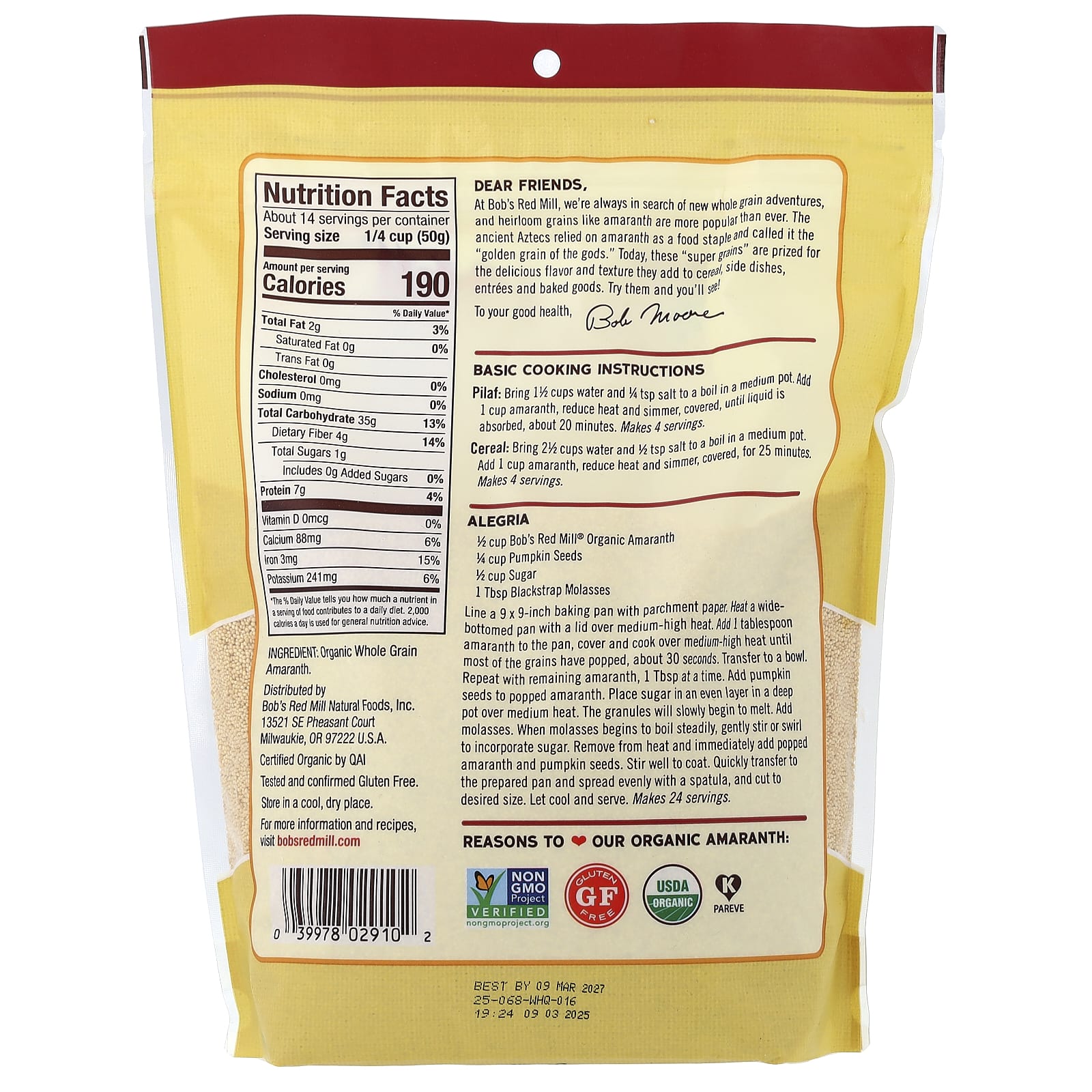 Bobs Red Mill Amaranto Orgânica Grão Integral 680 g (24 oz) – Bob’s Red Mill Alimentos Alimentos embalados e prontos Grãos.