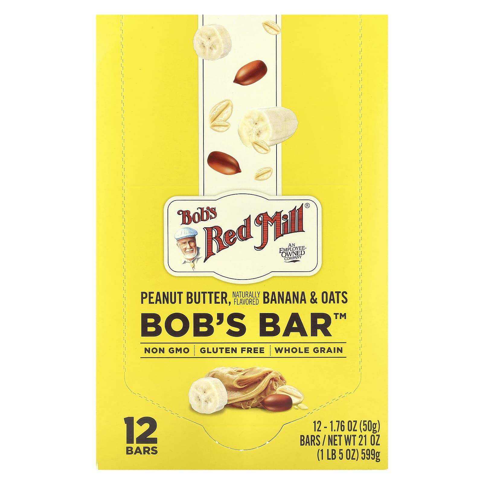 Bobs Red Mill Bobs Bar™ Manteiga de Amendoim Banana e Aveia 12 Barras 50 g (176 oz) Cada – Bob’s Red Mill Alimentos Barras.