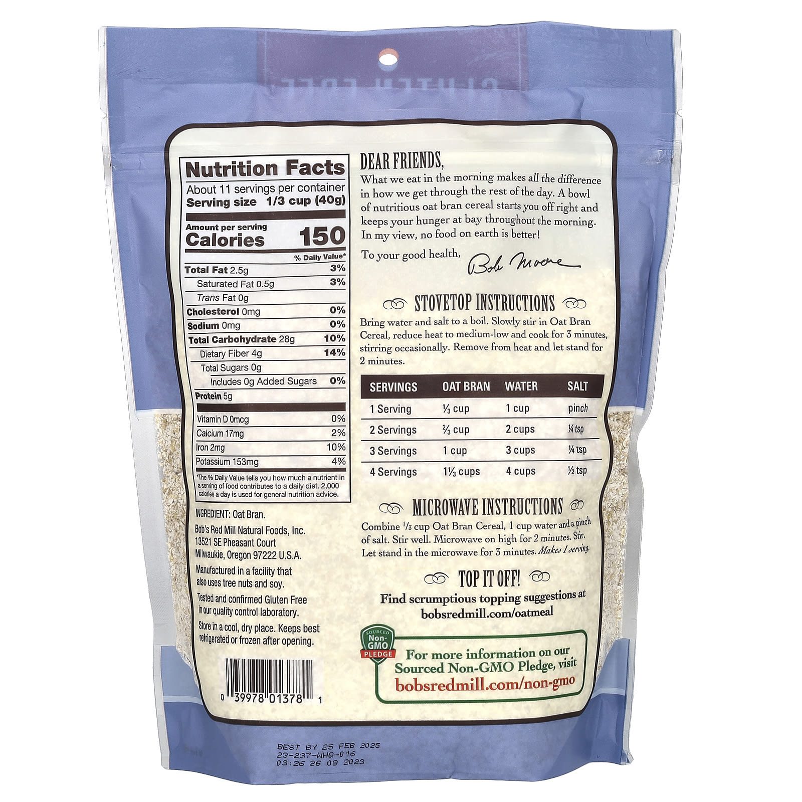 Bobs Red Mill Cereal de Farelo de Aveia Sem Glúten 454 g (1 lb)