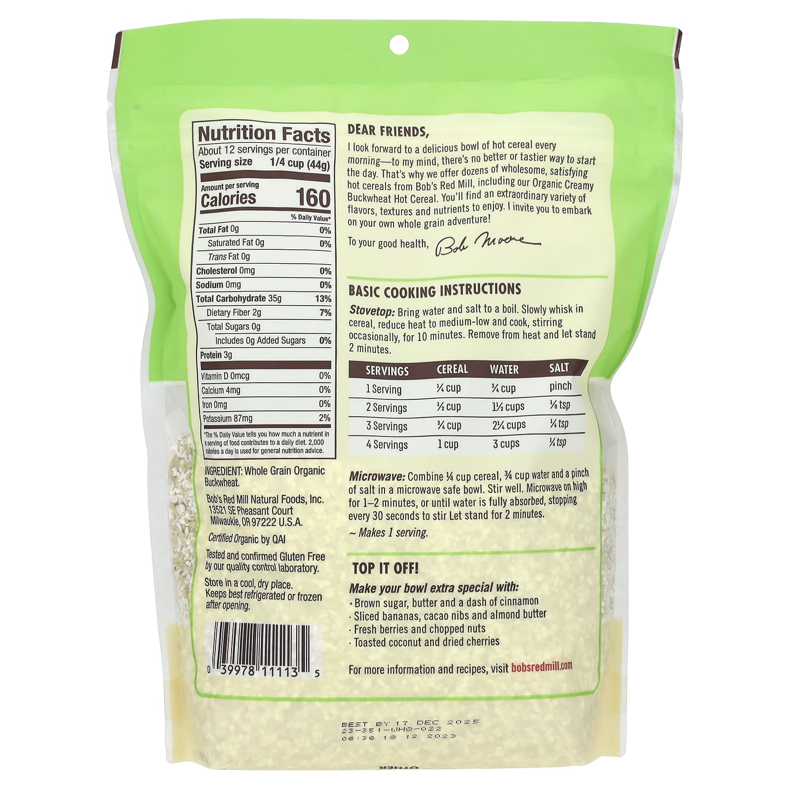 Bobs Red Mill Cereal Quente de Trigo Sarraceno Orgânico Grãos Integrais 510 g (18 oz) – Bob’s Red Mill Alimentos Cereais e alimentos para café da manhã Cereais quentes.