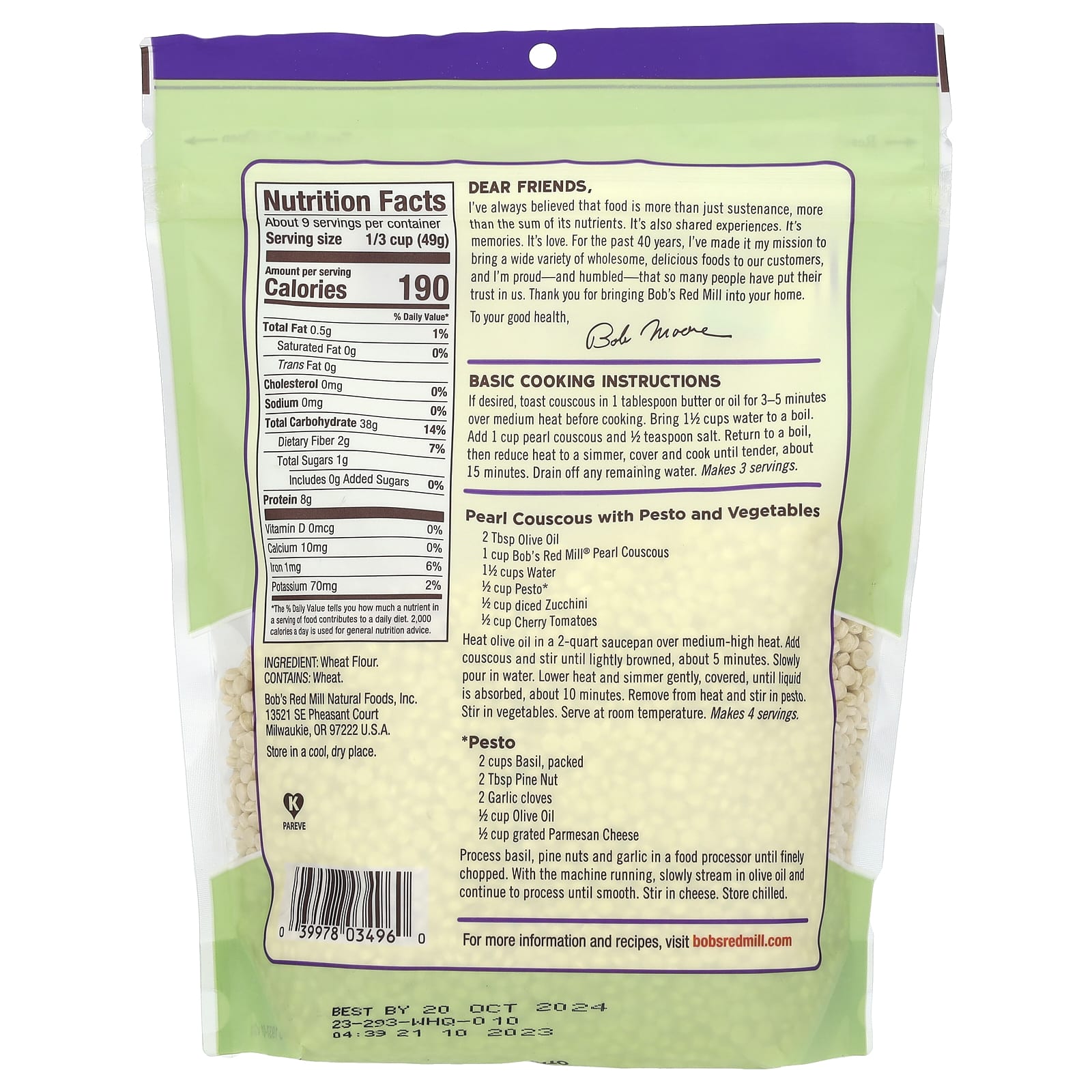 Bobs Red Mill Cuscuz de Pérola Tradicional 454 g (16 oz)