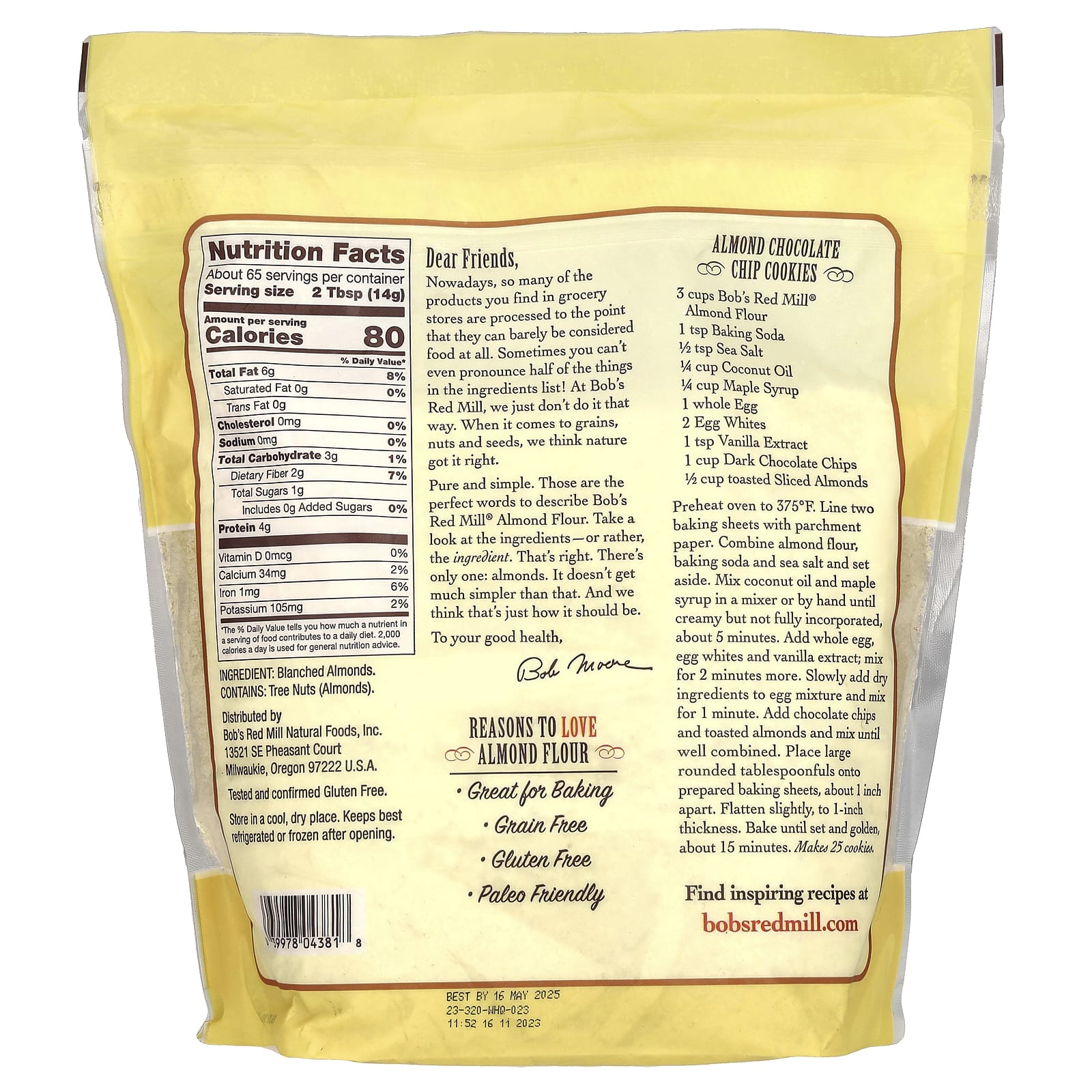 Bobs Red Mill Farinha de Amêndoa Superfina 907 g (32 oz) – Bob’s Red Mill Alimentos Fermentos, farinhas e misturas Farinha de amêndoa fina e grossa.