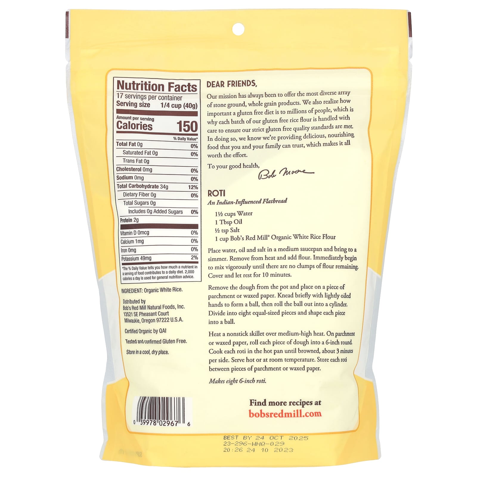 Bobs Red Mill Farinha de Arroz Branco Orgânico 680 g (24 oz) – Bob’s Red Mill Alimentos Fermentos, farinhas e misturas.