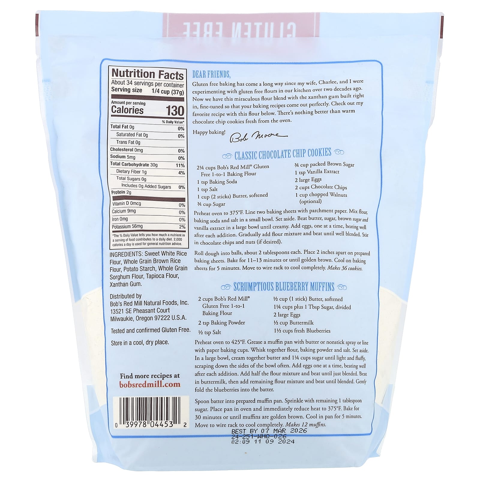 - 2¼ de xícaras de Farinha para Panificação 1 a 1, Sem Glúten, do Bob’s Red Mill®