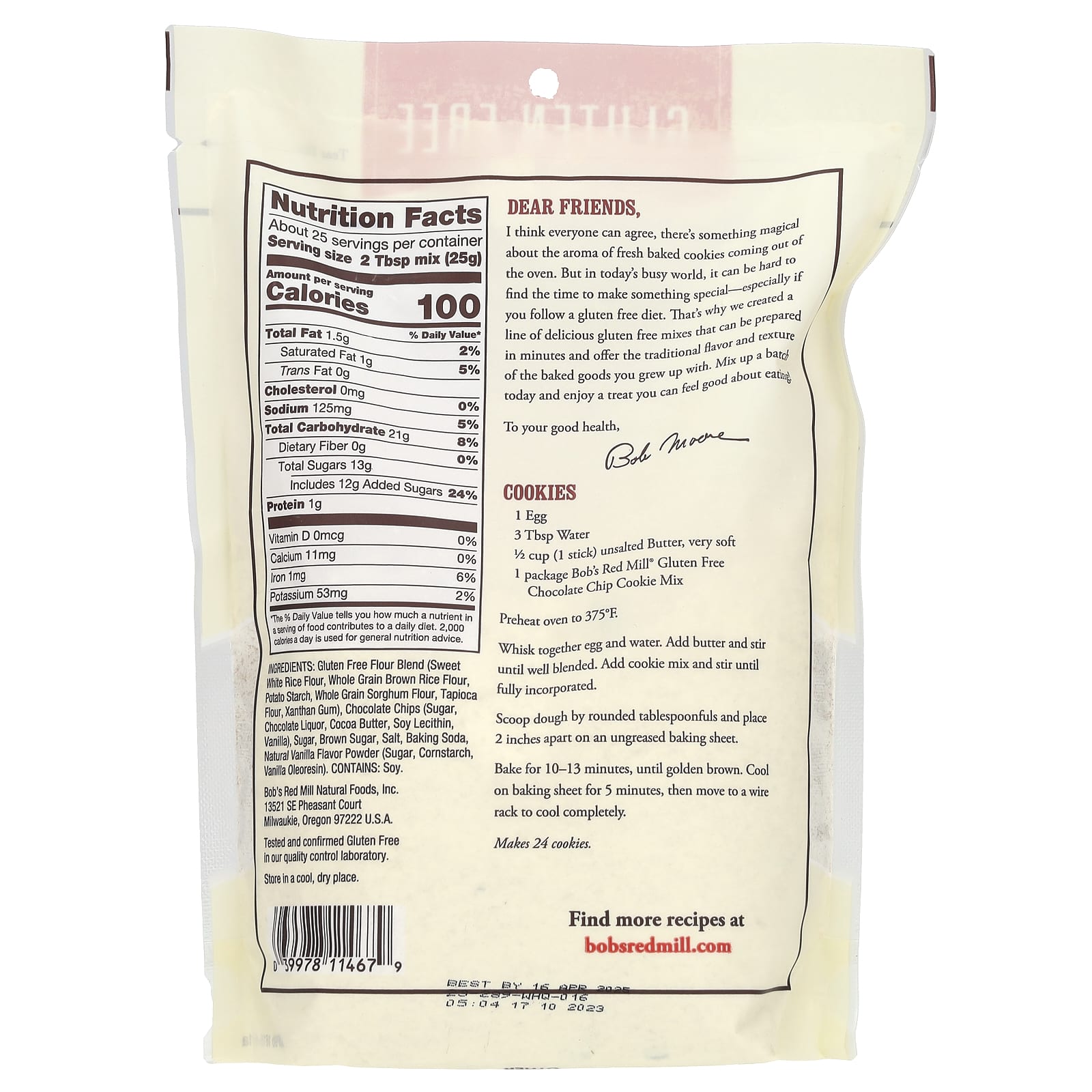 Bobs Red Mill Mistura para Biscoitos com Lascas de Chocolate Sem Glúten 624 g (22 oz) – Bob’s Red Mill Alimentos Fermentos, farinhas e misturas Mistura de ingredientes para cookies.