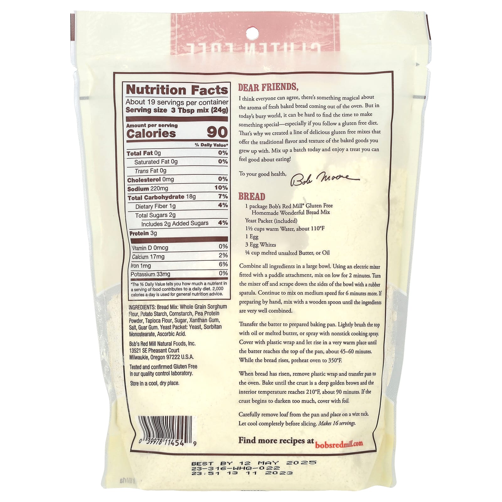 1 pacote de Mistura de Pão Maravilhosa Caseiro sem Glúten da Bob’s Red Mill®