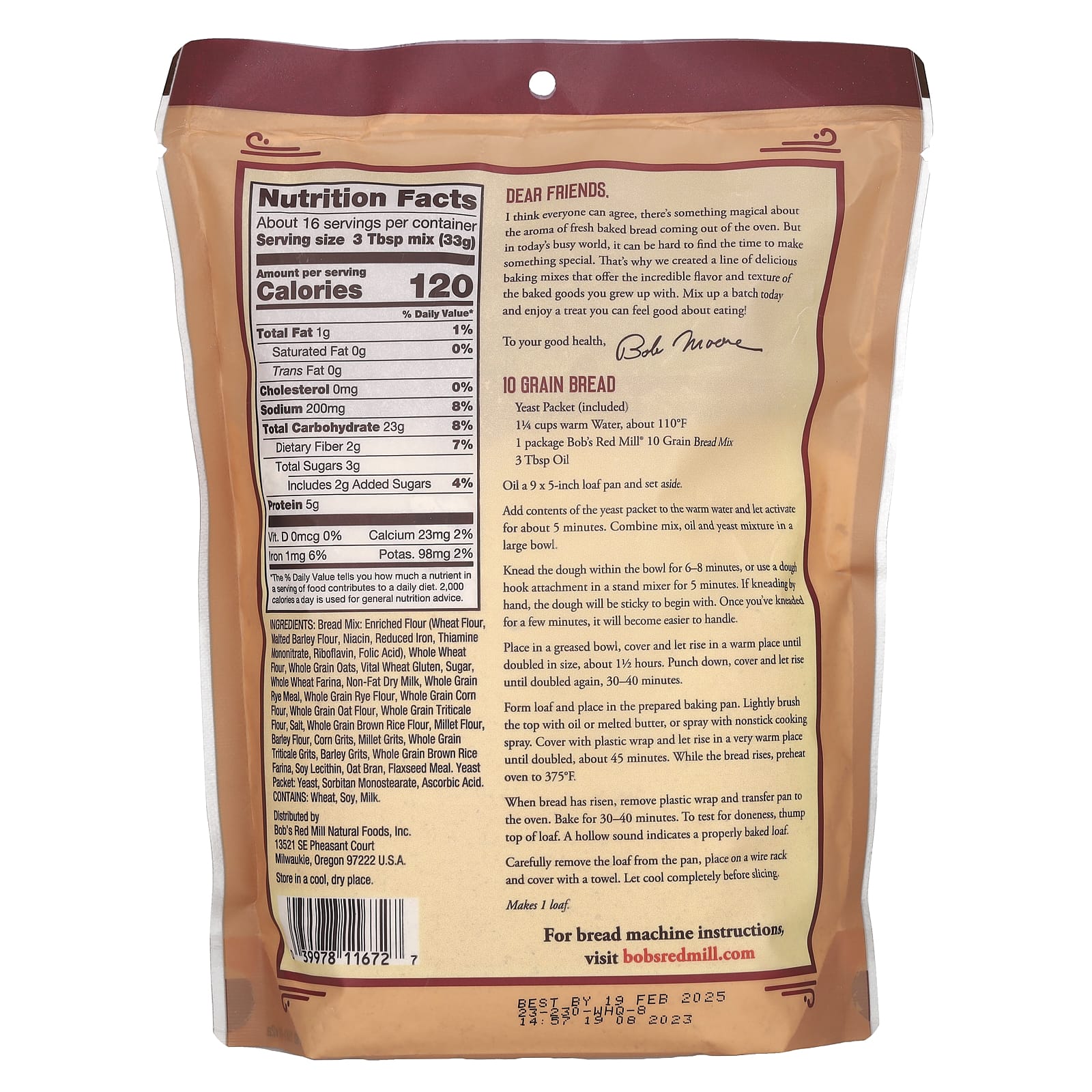 Bobs Red Mill Mistura para Pão de 10 Grãos com Grãos Integrais e Linhaça 539 g (19 oz) – Bob’s Red Mill Alimentos Fermentos, farinhas e misturas Mix para pães.