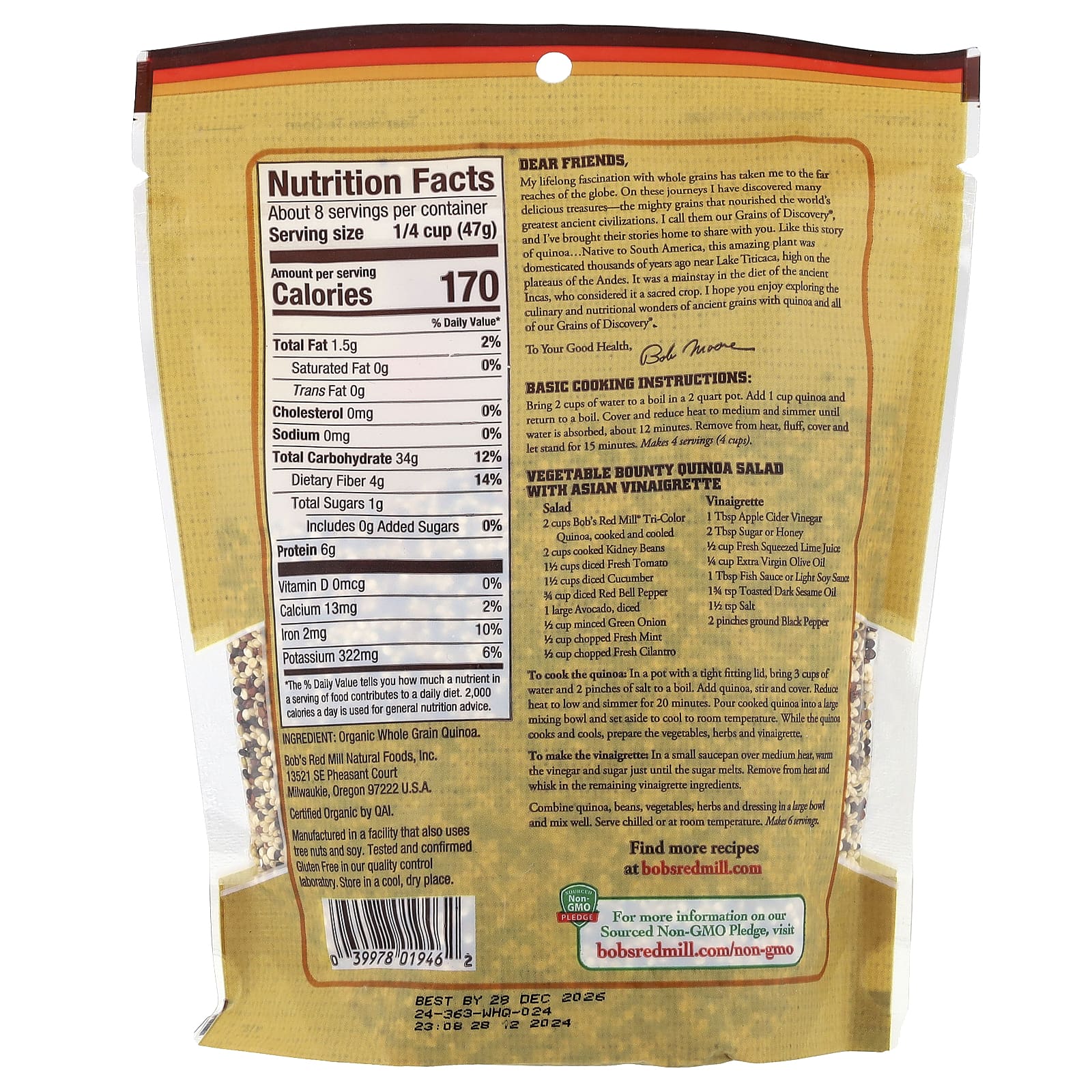 Minha fascinação permanente por grãos integrais me levou a lugares longínquos do globo. Nessas viagens, descobri muitos tesouros deliciosos: os grãos poderosos que nutriram as maiores civilizações antigas do mundo. Eu os chamo de nossos Grains of Discovery® e trouxe suas histórias para casa para compartilhar com você. Como esta história da quinoa… Nativa da América do Sul, essa planta incrível foi domesticada há milhares de anos perto do Lago Titicaca, no alto dos planaltos da Cordilheira dos Andes. Ele era a base da dieta dos antigos Incas, que o consideravam uma plantação sagrada. Espero que você goste de explorar as maravilhas culinárias e nutricionais dos grãos antigos com a quinoa e todos os nossos Grains of Discovery®.
