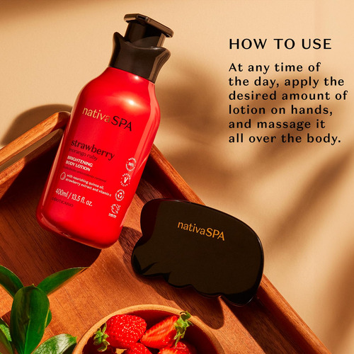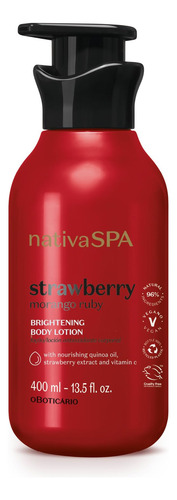 Satisfaça seus sentidos e revitalize sua pele com a Loção Corporal Antioxidante de Morango Nativa Spa. Enriquecida com a bondade de extratos de morango ricos em antioxidantes e ingredientes nutritivos, essa loção corporal fornece hidratação profunda e revitaliza a pele, deixando-a macia, flexível e maravilhosamente perfumada. A fórmula leve é rapidamente absorvida, envolvendo sua pele em um abraço refrescante. Presenteie-se com os cuidados luxuosos do Nativa Spa e experimente o poder dos morangos, da vitamina C e do óleo de quinoa para uma pele radiante e revitalizada. – Poder antioxidante: a loção corporal antioxidante de morango Nativa Spa Ruby aproveita o poder antioxidante dos extratos de morango. Rico em vitamina C e antioxidantes, os morangos ajudam a proteger a pele dos radicais livres, promovendo uma aparência saudável e rejuvenescida. – Hidratação profunda: esta loção corporal proporciona hidratação profunda à pele, repondo a umidade e restaurando seu brilho natural. Nutre e revitaliza a pele seca e opaca, deixando-a macia, suave e intensamente hidratada. – Fragrância refrescante de morango: desfrute do aroma delicioso de morangos frescos, misturado com notas florais e amadeiradas. – Enriquecido com 100% de óleo de quinoa: nosso óleo de quinoa extraído exclusivamente é uma fonte superior de proteínas, antioxidantes e ômegas 3, 6 e 9, vencendo 30 vezes mais do que o coco óleo, 4x sobre óleo de abacate e 2x sobre óleo de amêndoa em seus resultados comprovados. – Leve e de rápida absorção: a fórmula leve e não oleosa desta loção corporal garante uma rápida absorção, permitindo que você desfrute de seus benefícios nutritivos sem qualquer viscosidade ou resíduo. Deixa sua pele revigorada e revitalizada.