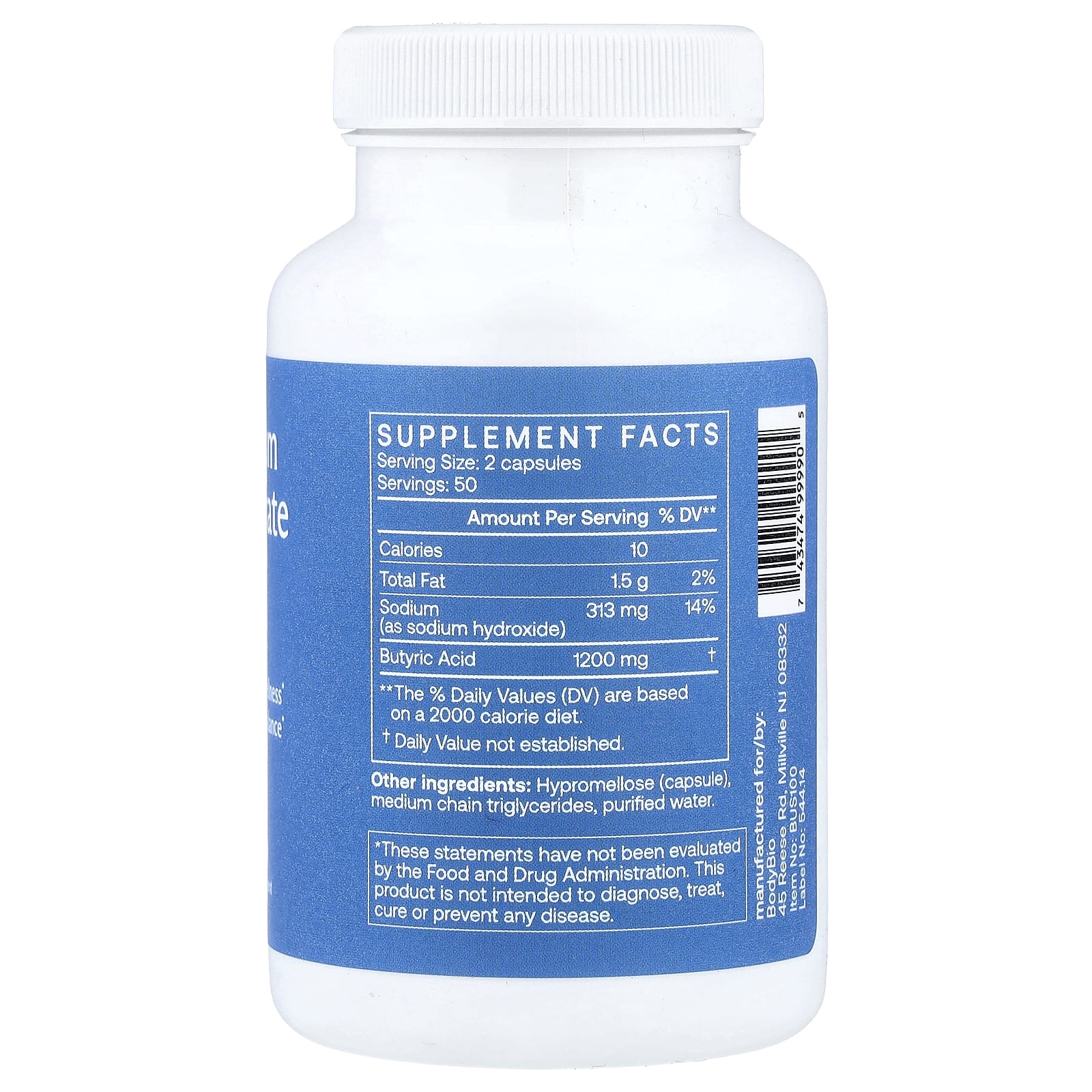 BodyBio Butirato de Sódio 100 Cápsulas – BodyBio Suplementos Saúde Intestinal Controle de peso Supressor de apetite.