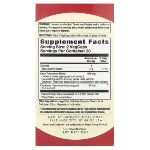 | Cranberry (Vaccinium macrocarpon) (extrato da fruta) | 150 mg | ** |