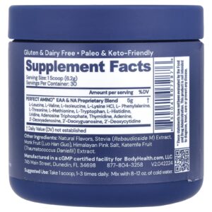 BodyHealth Perfect Amino™ Baunilha 186 g (66 oz) – BodyHealth Suplementos Aminoácidos Aminoácidos Essenciais (EAA).