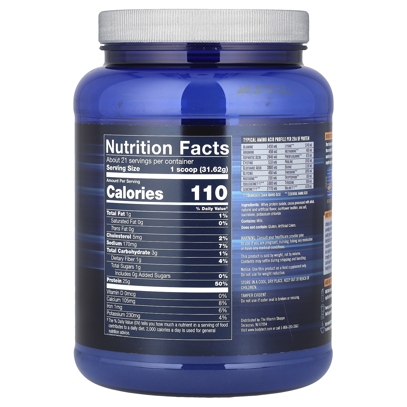 BodyTech Isolado de Proteína Whey Chocolate Intenso 680 g (15 lb) – BodyTech Nutrição Esportiva Proteína Proteína Whey Isolado protéico de soro de leite.