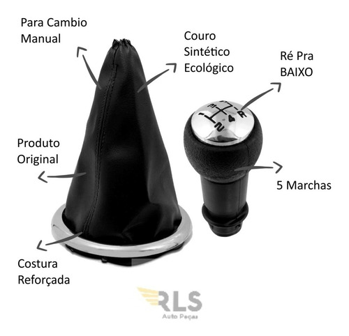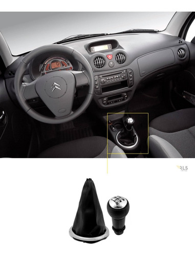 Manopla De Cambio + Coifa Citroen C3 Com Aro Cromado