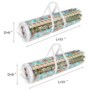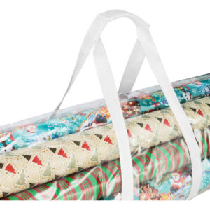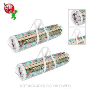 Wrapping Paper Storage Bags – Set of 2 Clear Totes with Handles for Organizing 30-Inch Rolls of Holiday, Birthday, and Christmas Wrap by Elf Stor – SET OF TWO WRAPPING PAPER STORAGE CONTAINERS – Each gift wrap organizer in the set stores up to 25 rolls of wrapping paper. Pulling leftover flattened, wrinkled, and torn gift wrap from your closet from previous holidays will be a thing of the past. – STANDARD LENGTH – At 31-inches-long, these wrapping paper organizers are the perfect length to hold rolls of 30-inch gift wrap, providing ample space for your unused birthday and gift wrap and holiday wrapping paper, or even be used for poster storage. – CONVENIENT STORAGE – These holiday wrap organizers feature sturdy white nylon handles for transporting or hanging, a zippered top for secure storage, and clear, see-through PVC construction, allowing you to view the wrapping paper rolls stored inside. – DURABLE – Sturdy plastic construction with stitched seams and gussets ensures that these gift wrap organizer bags will be ready for duty year after year. The nylon carry handles make transporting gift wrapping paper rolls for all occasions a breeze. – PRODUCT DETAILS – Materials: PVC and Nylon. Dimensions: (L) 31 x (W) 9 x (H) 9. Includes Two Storage Bags. Color: Clear and White.