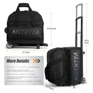 A bolsa Roller Bowling Ball tem um design simples combinado com excelente artesanato, o que equivale a uma bolsa fantástica. Uma base robusta mantém 2 bolas de boliche firmemente no lugar durante o transporte. Coloque um sapato tamanho 16 no espaçoso compartimento de sapatos, bem como muitos dos acessórios de que você precisa ao ir para a boliche. A bolsa de boliche de 2 bolas tem rodas de plástico moldadas de 3,5 polegadas que criarão um rolo suave e fácil para transportar suas bolas de boliche de e para as pistas. Combine uma bolsa compacta e elegante com rodas excelentes e uma alça retrátil e você terá a bolsa perfeita para suas necessidades de boliche. – Bolsa de boliche com o novo design de 2025 – A bolsa de boliche pesa apenas 2,3 kg, quase 1 kg mais leve que o produto tradicional. Portanto, é mais leve, mais bonita e mais fácil de usar. – Bolsa de boliche de 2 bolas com rodas – A bolsa de boliche rolante inclui um compartimento A3 para 2 bolas, sapatos, toalhas, limpador de bolas e outros acessórios de boliche. – Alta qualidade – Esta bolsa de boliche é feita de tecido oxford de alta densidade 1680D e tem vantagens como resistência ao rasgo, textura vertical forte, alta densidade, boa impermeabilização e boa durabilidade, pode suportar com eficácia peso suficiente. – Fácil de transportar – A bolsa de boliche está equipada com alças acolchoadas ajustáveis e alças acolchoadas, proporcionando uma experiência de transporte confortável. A alça retrátil premium (com fechadura de botão) pode se estender até 39,5 (100 cm) para a altura desejada e facilitar o transporte. – Serviço e suporte – Qualquer dúvida ou pergunta sobre nossa bolsa de snowboard, não hesite em entrar em contato com a “Zhao Yan Direct”. Nossa equipe amigável e responsiva está pronta para responder às suas mensagens na Amazon assim que possível!