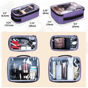 Bolsa de cosméticos BAFASO Bolsa de maquiagem com 4 bolsas internas removíveis — EXCELENTE QUALIDADE — Esta capa de maquiagem é feita de náilon resistente. O acolchoamento interno espesso oferece uma boa proteção para suprimentos de maquiagem/higiene pessoal/cabelo. – BOLSAS REMOVÍVEIS – 4 bolsas transparentes removíveis no compartimento principal podem não apenas ajudar a manter os cosméticos organizados, mas também fornecer uma visão geral clara do conteúdo. 1 bolso interno de malha para colocar máscaras faciais e similares. – BOLSOS PARA FERRAMENTAS – Os bolsos laterais versáteis oferecem amplo espaço para guardar pincéis de maquiagem, batons e similares (a área transparente pode ser limpa). 1 bolso frontal com zíper e 1 bolso traseiro aberto para guardar itens pessoais. – FÁCIL DE TRANSPORTAR – Vem com um alça de ombro ajustável e 2 alças superiores resistentes para facilitar o transporte. Ele também tem uma alça traseira para segurá-lo em uma mala. – DIMENSÕES: 10" x 8" x 10,5” (bolsa inteira), 9,5" x 7,5" x 3,25" (bolsa grande), 7,75" x 4,25" x 2,5" (bolsa pequena).