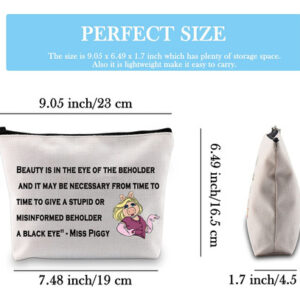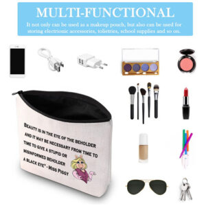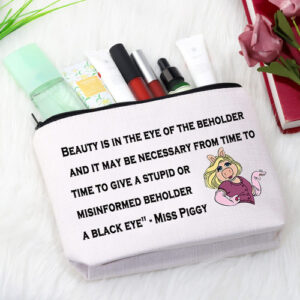 Material: tela com zíper de metal Tamanho: 9,2 largura x 6,8 altura x 2 parte inferior Impressão da imagem: impressão 3D Características: 1. Design requintado 2. Fácil de embalar e transportar 3. Amplamente utilizado 4. Ótimo presente Se você gosta desta bolsa de cosméticos exclusiva, clique no carrinho de compras imediatamente. Acredite em mim, você definitivamente ficará profundamente atraído por isso! – Ideias exclusivas para presentes: “A beleza está nos olhos de quem vê e pode ser necessário, de tempos em tempos, dar um olho roxo a um observador estúpido ou mal informado” — Tamanho perfeito: 9,2 polegadas x 6,8 polegadas (DICAS: erro permitido na medição manual). Tamanho adequado para maquiagem e papelaria. Basta carregar cosméticos diários, ferramentas de maquiagem, como batom, sombra para os olhos, base líquida, kit de barbear masculino, pincel de maquiagem ou outros itens pequenos. – Material durável. Feito de lona com zíper de metal, macio e confortável, resistente à sujeira e à abrasão, fácil de limpar. Leve, muito durável e leve de transportar. – Design de moda Nossa bolsa de cosméticos adota impressão 3D, padrões requintados são impressos nela para tornar as bolsas de cosméticos mais interessantes e mostrar sua personalidade. Além disso, a redação do roteiro adiciona um toque de elegância a essas bolsas. É realmente um presente especial e atraente para compartilhar com sua amiga, mãe, tia, filha, irmã, professora, enfermeira, médica, esposa, família, etc. Ótima para o Dia das Mães, Natal, Dia de Ação de Graças, Dia dos Namorados, Dia da Mulher e muito mais. – Amplamente utilizada. Não é apenas uma simples bolsa com zíper, também uma bolsa de maquiagem funcional, bolsa organizadora de viagens, pode ser usada como sacola de compras, produtos de higiene pessoal bolsa ou outra bolsa de artigos diversos e sirva como uma bolsa de uso diário para seus fones de ouvido, celular, cartões, óculos de sol e chaves. Ideal para viagens, férias, viagens de negócios, academia, camping, organização de banheiros e atividades ao ar livre.