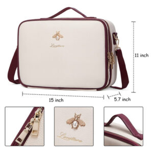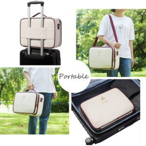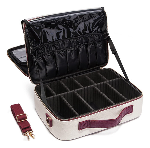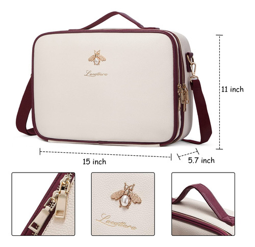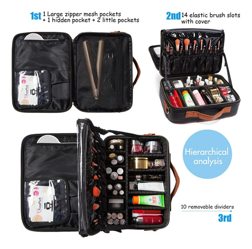 Bolsas de cosméticos LACATTURA grandes — 2 formas de transporte: esta grande bolsa de cosméticos (15" L x 11" L x 5,7" A) vem com uma alça de ombro removível de couro que oferece uma opção alternativa de transporte que pode ser ajustada, tornando-a uma opção versátil para você levar para o trabalho, festas, viagens ou qualquer atividade ao ar livre. – Material premium: esta bolsa de beleza é feita de tecido de couro PU de alta qualidade, forro de nylon. Elegante e fácil de limpar. — COMPARTIMENTOS AJUSTÁVEIS: Esta bolsa de maquiagem tem vários compartimentos e compartimentos para pincéis de maquiagem. Você pode manter suas ferramentas de maquiagem limpas e arrumadas. Compartimentos ajustáveis de design especial, que você pode ajustar conforme necessário. – MUITO ESPAÇO DE ARMAZENAMENTO: esta bolsa de maquiagem tem espaço suficiente para guardar sua maquiagem e acessórios cosméticos, como batom, brilho labial, pincéis de maquiagem, sombra, paletas de maquiagem, escovas de cabelo, produtos para a pele, esmaltes, ferramentas de arte para unhas, xampu e assim por diante. – GARANTIA DE SERVIÇO: 30 dias de troca e devolução gratuitas. Se você tiver alguma dúvida sobre o produto, sinta-se à vontade para nos enviar um e-mail, responderemos prontamente em 12 horas.