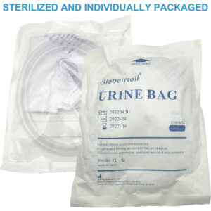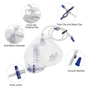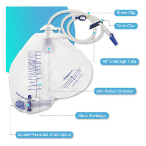 Bolsas de drenagem urinária à prova de vazamentos — Material de grau médico: a bolsa de drenagem urinária consiste em um corpo de bolsa de drenagem, tubo de drenagem flexível e resistente a dobras de 48 polegadas, clipe de tubo, clipe de folha, gancho e corda suspensa, junta cônica, tampa protetora de junta e interruptor de drenagem. Feito de material de grau médico, construção durável para contenção de odores e resistência a vazamentos. – Design anti-refluxo: há uma câmara anti-refluxo na bolsa de drenagem para evitar que o refluxo urinário da bolsa de drenagem retorne ao tubo de drenagem. E o tubo de drenagem resistente a dobras de 48" garante que a urina fique desobstruída, fornece drenagem rápida e também elimina a coluna de urina em pé. – Fácil de usar: bolsas de cateter com marcas de graduação claras para facilitar a leitura; os grampos que seguram o tubo podem fazer com que a urina seja retida na junta da porta de amostragem, o que é conveniente para coleta de urina. O gancho, o clipe e a corda pendurada na bolsa se encaixam com segurança em um corrimão ou lençol e cadeira de rodas para maior comodidade; a válvula de drenagem pode ser operada com uma mão, o que é conveniente e prático. – Âmbito de aplicação: A capacidade da bolsa de drenagem GlobalRoll é de 2.000 ml, não será necessário trocar as bolsas de urina com tanta frequência, economizando dinheiro e tempo de limpeza. Usado principalmente para pacientes em coma cirúrgico, incontinência urinária e outras pessoas inconvenientes, ideal para pessoas que não ambulam, pacientes hospitalizados e aqueles que precisam de cuidados com a incontinência enquanto dormem. – Garantia ao cliente Cada produto é esterilizado e embalado individualmente, não use se a embalagem estiver aberta ou danificada. O saco de drenagem é para uso único, descarte após o uso. Se você não estiver satisfeito com nossos produtos, entre em contato conosco a tempo e faremos o possível para resolver os problemas para você.