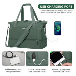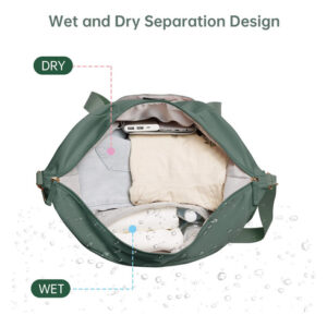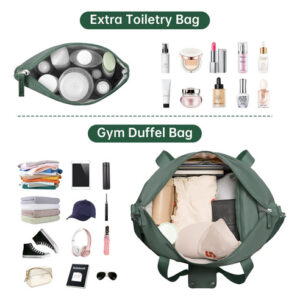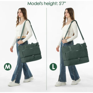 Se você está procurando uma bolsa de ginástica versátil e elegante que também possa funcionar como uma mala de viagem, nossa bolsa de ginástica para mulheres é a escolha perfeita. Com seu tamanho extra grande e vários bolsos, você pode armazenar facilmente todos os itens essenciais para sua academia e viagens, incluindo roupas, toalhas, sapatos, produtos de higiene pessoal e até mesmo seu laptop ou tablet. O compartimento separado para sapatos com ventilação ajuda a manter sua bolsa fresca e limpa, enquanto o bolso impermeável forrado de PVC mantém suas roupas molhadas ou toalhas separadas do resto de seus pertences. – Tamanho extra grande Com dimensões de 20,5 x 8,8 x 15,7 polegadas, nossa bolsa de ginástica nova e aprimorada oferece ainda mais espaço para guardar suas roupas, toalhas, produtos de higiene pessoal, sapatos e outros itens essenciais. Adequada para 5 a 7 dias de viagem, não recomendada como bolsa de itens pessoais. – Mochila separada e úmida. Esta mochila feminina oferece um compartimento principal espaçoso para guardar suas roupas e itens. Um bolso forrado de PVC impermeável com zíper para roupas molhadas. Além disso, esta bolsa de viagem também oferece uma bolsa de maquiagem extra pequena para facilitar o armazenamento – compartimento separado para sapatos com aberturas. Esta bolsa grande de fim de semana tem um compartimento separado na parte inferior para seus sapatos e roupas sujas. E o compartimento para sapatos tem 2 saídas de ar para dispersar o mau cheiro dos sapatos. Construção firme e design removível. Esta bolsa de mão é feita de náilon resistente à água para proteger seus itens com zíper de alta qualidade. As alças e as alças ajustáveis e removíveis têm um acolchoamento confortável, o que pode reduzir a pressão durante o transporte. Há uma alça de bagagem na parte de trás desta bolsa para facilitar sua viagem/viagem de negócios. – Bolsa de ginástica de ampla aplicação. Uma escolha perfeita para carregar todos os seus itens essenciais de ginástica e viagens. Use-o como bolsa de bagagem, bolsa esportiva de ginástica, bolsa de fim de semana, bolsa de mão, bolsa de praia. Nossa bolsa de ginástica para mulheres é adequada para esportes internos e externos, como viagens, esportes, viagens de fim de semana, ioga, academia, praia, negócios ou outro uso diário