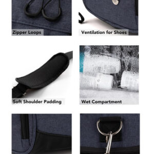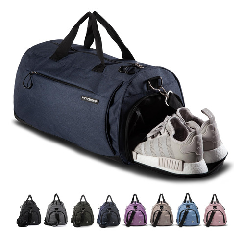 Bolsa de ginástica Fitgriff V1 para homens e mulheres com sapato e compartimento úmido — Mochila para viagens, esportes, exercícios e exercícios (azul marinho, 23 x 12 x 12 (M)) — ATLÉTICA E ESTILOSA — Descubra a bolsa multiuso FITGRIFF, uma bolsa engenhosamente criada, perfeita para academia, viagens, natação, praia, sauna ou para usar como transporte de fim de semana. Seu tamanho compacto também o torna ideal como bagagem de mão em voos. – COM BOLSO EXTRA PARA SAPATOS E BOLSO ÚMIDO – Equipado com um bolso úmido impermeável isolado, é ótimo para guardar roupas de banho ou roupas de ginástica suadas. O compartimento para sapatos é ventilado, garantindo que seus tênis sejam armazenados separadamente e em ordem. – CONVENIENTE E PRÁTICO: Feito de tecido externo resistente com uma base impermeável para fácil manutenção e máxima proteção. Os puxadores de zíper estendidos permitem um acesso fácil aos seus pertences. – Zíperes premium – Comprometidos com a qualidade, selecionamos apenas zíperes de primeira linha para garantir um produto duradouro. Caso ocorra algum problema com zíper, entre em contato conosco para um substituto gratuito. – 6 bolsos separados: 1 compartimento principal espaçoso com uma pequena bolsa interna. 1 bolso úmido à prova d'água, 1 bolso respirável para sapatos, 1 bolso frontal de tamanho médio e 1 bolso lateral de malha.