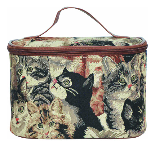 Uma bolsa de cosméticos de camada única com grande capacidade; ideal para guardar produtos de higiene pessoal e maquiagem. Fechado com zíper ao redor da tampa do estojo. 6 tiras elásticas internas ajudam a organizar pincéis de maquiagem e outros itens pequenos. Forrado com nylon estampado para proteção. A base robusta ajuda a apoiar a bolsa. Tamanho: L 23 cm x A 16 cm x P 16 cm Tamanho da embalagem: L 29 cm x A 16 cm x P 3 cm – A bolsa de maquiagem SIGNARE mede 9,0/5,9/5,9 e pesa 0,33 libras. Com uma grande capacidade, este organizador de maquiagem é ideal para guardar produtos de higiene pessoal, cosméticos e cuidados com a pele. – Este estojo de maquiagem tem um zíper ao redor da tampa, forrado com náilon estampado para proteção e contém seis tiras elásticas internas que ajudam a organizar pincéis de maquiagem e outros itens pequenos. – O material principal desta bolsa de maquiagem é feito de uma tapeçaria de alta qualidade, o que lhe confere um efeito de bolsa de carpete. A exclusividade de uma bolsa SIGNARE TAPESTRY é a arte do design. Cada produto da Signare tem sua personalidade e história para contar. Este lindo design de gato o torna um presente ideal com tema de gatos e presentes para amantes de gatos. Com uma infinidade de gatos e gatinhos adoráveis, como gatos malhados, gatos de pêlo curto e gatos de pêlo comprido. – A missão da SIGNARE é levar felicidade e diversão aos nossos clientes. Nossos produtos são guloseimas pessoais perfeitas ou ótimos presentes para amigos ou familiares especiais. Seria um excelente presente para mulheres; presentes de aniversário para ela; presentes de dia das mães; presentes para mamãe, presentes de aniversário para mamãe ou vovó. – A SIGNARE também oferece atendimento ao cliente gratuito e amigável, sinta-se à vontade para enviar um e-mail, resolveremos o problema para você o mais rápido possível. Garantia de 30 dias: oferecemos substituição gratuita e reembolso total.