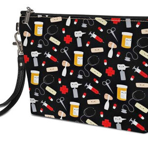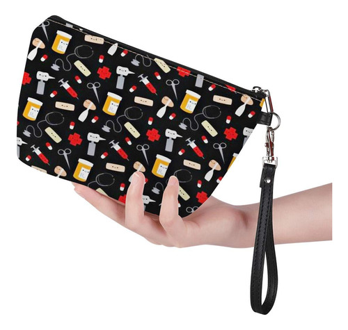 Bolsa de maquiagem Amzbeauty Nurse Design Bolsa de couro PU Bolsa de higiene pessoal Sacolas de cosméticos de viagem com zíper, presente para mulheres — TAMANHO: 8,5" L x 5,7" L x 2,5" P/21,5 x 14,5 cm (CxLx6,5 cm (CxLxP), esta linda bolsa de maquiagem é presente para mulheres/senhoras/namoradas/meninas/aniversário/aniversário de casamento – Design humano: a fofa estampa floral animal adiciona estilos exclusivos aos seus cosméticos, fazendo com que você roube os holofotes em cada festa ou jantar. MATERIAL: O couro PU é à prova d'água e livre de poluição, e o tecido à prova de sujeira pode ser lavado facilmente. A estampa feita sob medida é resistente ao desgaste e o zíper de metal é bastante suave – MULTIFUNCIONAL: pode ser colocado perfeitamente em sua bolsa ou mochila para guardar seu batom, sombra, pincel cosmético, loção, óculos ou fone de ouvido – SEGURA: esta bolsa de higiene é feita com material durável e fecho de zíper forte para garantir que seus produtos de higiene pessoal permaneçam seguros por dentro. Você pode carregar pequenos recipientes de plástico sem se preocupar