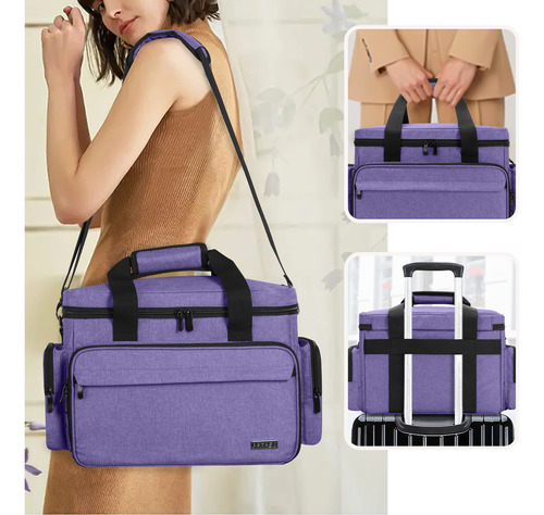 Bolsa de maquiagem grande BAFASO Bolsa de cabelo com 2 bolsas removíveis e divisórias removíveis — EXCELENTE QUALIDADE — Feita de náilon resistente. O acolchoamento interno espesso oferece boa proteção para suprimentos de maquiagem e cabelo. – ESPAÇO PRINCIPAL FLEXÍVEL – A seção principal com 2 divisórias removíveis contém muitos cosméticos de todos os tamanhos. 2 bolsas transparentes removíveis adicionais para manter os itens organizados. O bolso superior transparente é grande o suficiente para guardar produtos para o cabelo. – ESPAÇO DE ARMAZENAMENTO FRONTAL – A seção frontal tem 5 bolsos para escova e uma aba para protegê-los e cobri-los (a área pode ser removida facilmente). O bolso de malha com zíper pode colocar outros itens planos. – OUTROS DETALHES – 2 bolsos laterais e 1 bolso externo com zíper também são convenientes. A alça de ombro ajustável e as alças superiores resistentes para conveniência de viagem. Ele também tem uma alça traseira para segurá-lo em uma mala. – DIMENSÕES – 13,5 x 8 x 9,5 (bolsa inteira), 7,75 x 6,25 x 2,75 (2 bolsas pequenas).