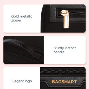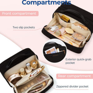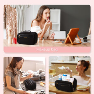 A bolsa de maquiagem de viagem BAGSMART alcança um equilíbrio perfeito entre função e estilo por meio da combinação de materiais de alta qualidade e versatilidade, tornando-a uma companheira essencial para suas viagens. Com seus generosos compartimentos múltiplos, este organizador de bolsas de maquiagem é perfeito para organizar seus cosméticos diários para uma semana de viagem ou uso diário! Fácil de limpar. Com bolsos de PVC à prova de sujeira, oferece armazenamento eficaz de pincéis de maquiagem, esponjas e puffs, além de proteção à prova de derramamento para seus produtos de beleza e cuidados com a pele. Acesso rápido aos itens – A bolsa de maquiagem BAGSMART pode ser desdobrada em quase 180 graus, fornecendo uma abertura espaçosa para facilitar o acesso a seus cosméticos, produtos de higiene pessoal e outros itens essenciais de viagem. O bolso interno com zíper para guardar delineadores, máscaras, gloss labial e outros itens mais longos para uma busca rápida e fácil. E o bolso externo foi cuidadosamente projetado para armazenar pequenos itens para retoques, como gloss labial e batons. Exquisita e prática — Feita de tecido resistente à água e durável com zíperes de metal, esta bolsa de cosméticos é perfeita como organizadora de viagens e organizadora diária. Essas bolsas de maquiagem para mulheres são presentes perfeitos para o Dia da Mulher, Dia dos Namorados, aniversários, Dia das Mães e outros feriados. – Solução de armazenamento eficiente. Este organizador de bolsas de maquiagem foi projetado com vários compartimentos. O compartimento frontal é perfeito para guardar frascos de cosméticos e produtos de higiene pessoal e também possui dois bolsos internos para blushes e batons. O compartimento traseiro é espaçoso o suficiente para acomodar grandes paletas de sombras, base de almofada, blushes e pós soltos. Além disso, o bolso divisório com zíper pode armazenar com segurança delineadores, máscaras, esmaltes labiais e outros itens mais longos. O bolso de PVC transparente foi projetado especificamente para guardar pincéis de maquiagem, esponjas e puffs. – Acesso rápido aos itens A bolsa de maquiagem de viagem BAGSMART pode ser desdobrada em quase 180 graus, oferecendo uma abertura espaçosa para facilitar o acesso a cosméticos, produtos de higiene pessoal e outros itens essenciais de viagem. O bolso externo de agarrar rapidamente foi cuidadosamente projetado para armazenar itens pequenos para retoques, como gloss labial e batons. Medindo 9,0* 4,5* 4,5 polegadas, é perfeito para organizar seus cosméticos diários e itens essenciais de viagem para uma semana de viagem! – Bolsos fáceis de limpar Esta bolsa de viagem para maquiagem vem equipada com 1 bolso com zíper de PVC resistente a manchas, ideal para armazenar um conjunto completo de pincéis de maquiagem, esponjas e esponjas de pó. Uma simples limpeza os mantém limpos, eliminando preocupações com manchas de maquiagem. – Qualidade premium Esta bolsa de cosméticos BAGSMART é feita de poliéster resistente à água para excelente durabilidade e proteção. Esta bolsa de maquiagem possui zíperes de metal personalizados que garantem uma operação suave e uma alça superior de couro resistente que facilita o transporte. Seu interior bem organizado, combinado com seu design moderno e portabilidade, a tornam a escolha ideal para uma bolsa de maquiagem elegante e conveniente. – Versatilidade Com uma aparência elegante e charmosa e disponível em 3 cores, esta grande bolsa de maquiagem serve não apenas como companheira de viagem, mas também como bolsa de higiene versátil, carteira de viagem, organizadora de acessórios técnicos, bolsa de acessórios de viagem ou bolsa de armazenamento diário. Essas bolsas de cosméticos para mulheres são presentes perfeitos para o Dia da Mulher, Dia dos Namorados, aniversários, Dia das Mães e outros feriados.