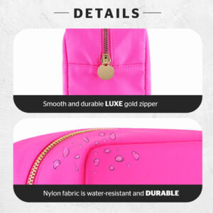 As características da bolsa grande de maquiagem de náilon Dancour incluem tecido premium resistente à água para ajudar a proteger produtos de higiene pessoal, cosméticos, ferramentas de cabelo e acessórios. A bolsa de nylon tem um luxuoso zíper circular de metal, dando à sua bolsa de higiene uma aparência moderna. A bolsa lisa de nylon com zíper contém um único bolso para maximizar o espaço, tornando-a uma bolsa de maquiagem fantástica para viagens. A capacidade extra grande permite que você leve suas necessidades diárias, produtos de higiene pessoal de viagem e coloque todos os seus itens essenciais de beleza em uma grande bolsa de viagem para maquiagem. Você nunca precisará deixar nenhum produto de beleza ou utensílios de cabelo para trás. Não há necessidade de várias bolsas de maquiagem para mulheres. Traga todos os seus itens essenciais em uma grande bolsa de maquiagem, viajando pelo mundo com seus acessórios favoritos. A grande bolsa de maquiagem e cosméticos de viagem da Dancour facilita a viagem, permitindo que mulheres e adolescentes tragam tudo o que precisam, seja para uma escapadela de fim de semana ou uma longa viagem. A bolsa de cosméticos para mulheres cabe dentro de sua bagagem de mão ou mochila de fim de semana. A linda bolsa de viagem formal para produtos de higiene pessoal é indispensável para as mulheres viajarem. Este não é apenas um organizador de maquiagem para viagens, a grande bolsa de viagem de cosméticos também pode ser usada como bolsa organizadora de produtos de higiene pessoal, bolsa de beleza, bolsa de banheiro e bolsa de protetor solar para mulheres. Personalize a bolsa de maquiagem de viagem, bolsa grande com adesivos ou monograma para amigos e familiares como presente de aniversário, presente de dia dos namorados, presente de Natal, presente de ano novo e presente de dia das mães. Fique atento às bolsas de maquiagem coloridas adicionais, como roxo, rosa, preto, bege e muito mais. As dimensões da bolsa de cosméticos grande para mulheres são 11"x5"x8" polegadas/28x13x20 cm. Leve a bolsa de cosméticos Dancour com você em sua próxima viagem. A bolsa grande de maquiagem é feita de material de náilon que aceita adesivos e monogramas para personalizações em qualquer ocasião. – Bolsa de maquiagem grande – Tamanho 11 “x 5" x 8"/28 x 13 x 20 cm. A bolsa de higiene de viagem para mulheres tem um único bolso para espaço extra para acomodar todos os seus produtos de higiene pessoal, produtos de beleza, bolsas e acessórios. – Qualidade premium – A bolsa de maquiagem grande é feita de material de náilon premium com luxuosas bolsas douradas com zíper. – Aceita adesivos – O material da bolsa de maquiagem de náilon permite que você aplique facilmente seus adesivos favoritos e coloque todos os seus produtos de higiene pessoal de viagem. – RESISTENTE À ÁGUA – A bolsa de cosméticos de náilon é de náilon à prova de manchas de água material. Ajuda a proteger sua beleza, cosméticos e produtos de higiene pessoal contra acidentes com derramamento de água. — O presente perfeito — Personalize sua linda bolsa de maquiagem com um monograma ou adesivo. A bolsa de cosméticos Dancour é um presente feminino imperdível para amigos e familiares. – Bolsa de viagem multiuso – A grande organizadora de maquiagem também pode ser usada como uma bolsa de higiene grande para mulheres, bolsa formal, bolsa de maquiagem para meninas, bolsa de maquiagem grande, bolsa de beleza grande e bolsa de cosméticos grande. – Vários tamanhos e cores – Nossa bolsa de maquiagem grande Dancour vem em um estojo de cosméticos grande, mini estojo de cosméticos pequeno, bolsa de maquiagem de viagem com várias cores como rosa, preto, bege, roxo, rosa quente e azul.