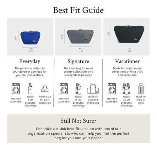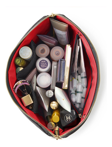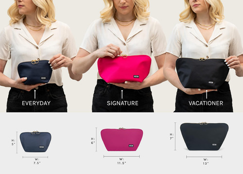 Finalmente, uma bolsa de maquiagem de luxo que não só armazena e protege sua maquiagem, mas é totalmente lavável à máquina! Perfeita para viagens. – Bolsa de maquiagem para férias (organizadora de pincéis vendida separadamente) Esta bolsa de maquiagem grande é perfeita para qualquer lugar: mantenha seus produtos de higiene pessoal, cosméticos e cuidados com a pele organizados e seguros. A bolsa oferece uma organização fácil para uma grande coleção de beleza ou férias, ela contém de 25 a 30 produtos e mede 13 x 7. Leve seus itens essenciais aonde quer que você vá! – Lavável na máquina Nossas bolsas de maquiagem são laváveis na máquina, o que significa que você não precisa se preocupar com o inevitável derramamento ou manchas. Chega de bolsas de maquiagem sujas, o material fácil de limpar torna esta bolsa de cosméticos lavável simples e fácil de manter. Guarde sua bolsa de maquiagem favorita por muitos anos! – Mantenha-se organizado Cansado de procurar todos os seus itens de maquiagem? Com zíperes em 3 lados, nossas bolsas de maquiagem se abrem bem para que você possa ver toda a sua maquiagem e cuidados com a pele sem precisar cavar. A bolsa possui um fundo largo que se destaca por si só para um interior espaçoso e fácil de usar. O design elegante apresenta bolsos de malha que facilitam o acesso às esponjas e ao modelador de cílios, além de um bolso com zíper para qualquer coisa que você queira manter segura. – Qualidade premium Usamos apenas náilon, malha e hardware premium em todos os nossos produtos. Esta bolsa de cosméticos durável é feita para durar e será a última bolsa de maquiagem que você precisará. Esta bolsa de maquiagem estética combina design elegante com artesanato de qualidade para uma bolsa de cosméticos personalizável como nunca antes. – KUSSHI Fundada por mulheres para mulheres. A KUSSHI cria bolsas de maquiagem luxuosas que resolvem problemas do dia a dia e mantêm as mulheres ocupadas organizadas. Entendemos que seus produtos de beleza são um investimento e acreditamos em protegê-los.