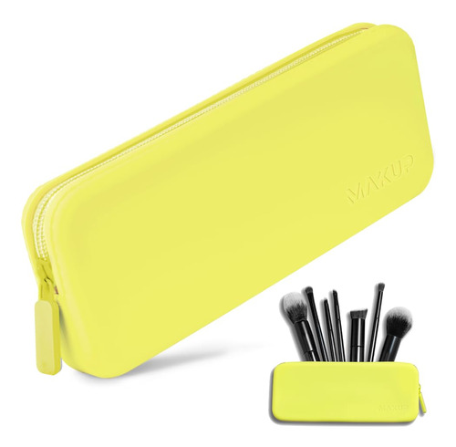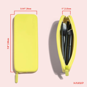 A bolsa de maquiagem multifuncional da Makup Beauty foi projetada com seus pincéis de maquiagem em mente, mas pode conter muito mais! Use como estojo de pincel de maquiagem, pequena bolsa de cosméticos ou até mesmo material escolar, como lápis e marcadores. Os pincéis de maquiagem e seus pertences são mantidos seguros e higiênicos. Feito com silicone de qualidade alimentar forte, flexível e fácil de limpar e possui um zíper de náilon de alta qualidade costurado à mão. Esqueça os organizadores de maquiagem volumosos. Guarde géis e lápis para sobrancelhas, batons e gloss, rímel, produtos de higiene pessoal, óculos de sol e muito mais! *Pincéis de maquiagem não incluídos. Não deve ser usada com pincéis grandes com mais de 7,8". – A bolsa de maquiagem multifuncional da Makup Beautys foi projetada pensando em seus pincéis de maquiagem! – Contém pincéis de maquiagem, cosméticos, ferramentas, lápis, marcadores e muito mais! – Convenientemente dimensionado com 7,8" de comprimento x 3,14" de altura x 1" de largura. Perfeito para viajar dentro de sua bolsa ou bagagem. – Feito com o silicone de qualidade alimentar mais amanteigado, flexível e lavável. – Fecho de zíper de náilon de alta qualidade, costurado à mão, para que suas ferramentas de maquiagem e pincéis estejam seguros e protegidos.