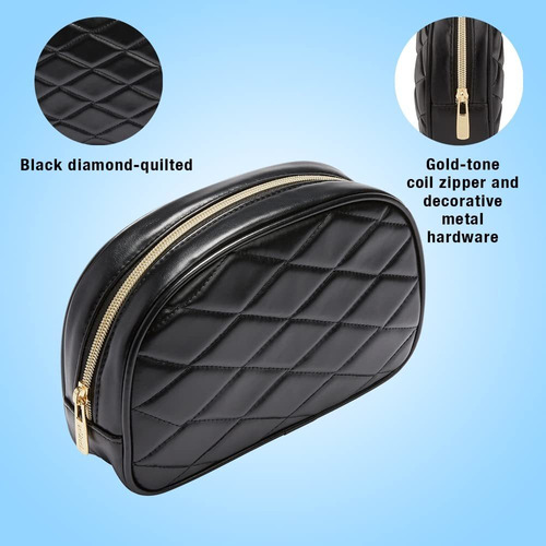 Bolsa de maquiagem pequena Conair, bolsa de cosméticos para retoques diários ou joias, tamanho perfeito para bolsa ou bagagem de mão, formato de organizador pequeno em colcha de diamante preto