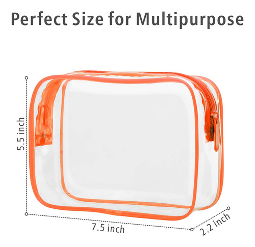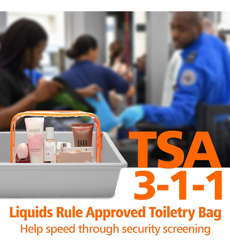 Bolsa de higiene de viagem aprovada pela TSA (para maiores de 12 anos). Siga rigorosamente a regra de líquidos TSA 3-1-1 para bagagem de mão de todas as companhias aéreas, para que você possa passar de forma fácil e rápida pela inspeção de segurança no aeroporto.Especificação: .Tamanho: 7,5 x 5,5 x 2,2 polegadasMaterial: plástico PVC transparente espesso Siga a regra TSA 3-1-1. A bolsa de higiene multifuncional é totalmente compatível com a TSA 3-1-1 A regra de líquidos para bagagem de mão é adequada para todos os aeroportos de viagens nacionais e internacionais. Fácil e rápido de passar pela verificação de segurança. O material transparente desta bolsa de higiene transparente garante as equipes de segurança do aeroporto examinam rapidamente o item dentro da bolsa, ajudam você a passar rapidamente pela tela de segurança. Zíper durável e costuras seladas. O zíper é deslizado suavemente, não é fácil de encravar, e a grande abertura do zíper é conveniente para abrir e embalar os itens. Costuras seladas. As costuras ao redor do zíper são reforçadas para selar, evitar que a bolsa se divida facilmente, para reduzir efetivamente o vazamento de líquidos fora da bolsa (o zíper não é à prova d'água) Reutilizável e ecológica. A bolsa de maquiagem de viagem é fácil de limpar. Depois de limpá-la com um pano úmido, a bolsa ficará como nova e poderá ser usada novamente nas próximas viagens. – Aprovada pela TSA: a bolsa de higiene de viagem transparente de 7,5 x 5,5 x 2,2 polegadas segue estritamente a regra de líquidos 3-1-1 da TSA para bagagem de mão de todas as companhias aéreas, para que você possa passar de forma fácil e rápida pela inspeção de segurança com ela no aeroporto – Costuras transparentes e reforçadas: a bolsa de higiene aprovada pela TSA é feito de PVC transparente de 0,5 mm de espessura, facilita a localização de seus itens e garante que a equipe de segurança verifique os itens rapidamente; costuras reforçadas evitam que a bolsa se parta fácil, para reduzir efetivamente o vazamento de líquidos desta bolsa (o zíper não é à prova d'água) – Zíper resistente e maior abertura superior: a bolsa de higiene tem um zíper durável que desliza suavemente; o zíper pode ser fechado com firmeza, seguindo rigorosamente a exigência da bolsa selável TSA 3-1-1; a grande abertura superior facilita o acesso aos itens em segundos – Portátil e reutilizável: este tamanho de litro A bolsa combina perfeitamente com garrafas de viagem, também é ótima para guardar cosméticos, produtos de higiene pessoal e coisas pequenas; dicas para remover o cheiro da pequena bolsa de higiene de viagem: primeiro lave a parte externa e interna da bolsa de maquiagem transparente com água e sabão; abra o zíper da bolsa e deixe-a em um local bem ventilado por alguns dias — Presente leve e perfeito para seu amigo: a bolsa de maquiagem transparente aprovada pela TSA tem menos de 1 kg, tamanho perfeito para caber em sua bagagem de mão para viagens ou férias; esta prática bolsa de cosméticos transparente é a melhor escolha como presente para seus amigos e familiares (para maiores de 12 anos) acima)