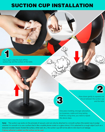 Saco de pancadas de mesa Strong Suction para escritório e quarto, brinquedo para aliviar o estresse, bolsa de boxe para controlar a raiva e se divertir no treino – Base de sucção forte: adere firmemente a qualquer superfície plana, proporcionando estabilidade mesmo durante socos vigorosos. – Uso versátil: ideal para espaços de escritório e exercícios em casa, misturando-se facilmente a qualquer ambiente. – Alívio do estresse: perfeito para aliviar a tensão no escritório ou relaxar em casa, oferecendo uma maneira física de liberar o estresse. – Fácil Configuração: rápida de instalar e remover, oferecendo conveniência e versatilidade para vários locais. – Construção durável: fabricada com materiais premium para suportar o uso frequente e resistir ao desgaste.