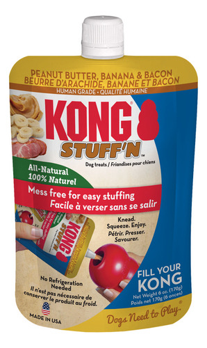 A manteiga de amendoim e frango totalmente naturais KONG StuffN combinam dois sabores favoritos em uma bolsa conveniente projetada com um bocal sem bagunça para facilitar o recheio. Esta guloseima irresistivelmente saborosa de qualidade humana é ideal para treinar e usar em qualquer lugar. Amplie o desafio e o enriquecimento colocando um KONG recheado no freezer por 4-6 horas. Sem cores e sabores artificiais. Sem glúten. Não é necessária refrigeração. Feito nos Brasil. Bocal sem bagunça. Grau humano. Sem cores ou sabores artificiais. Sem glúten. Não é necessária refrigeração. Feito nos Brasil. Embalado em uma bolsa conveniente, sem bagunça e fácil de apertar para simples enchimento, treinamento e tratamento de KONG em casa ou em qualquer lugar.