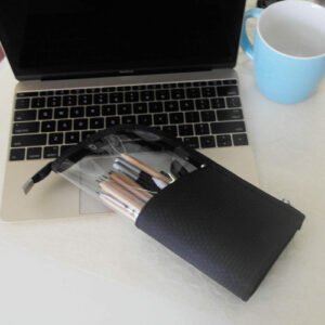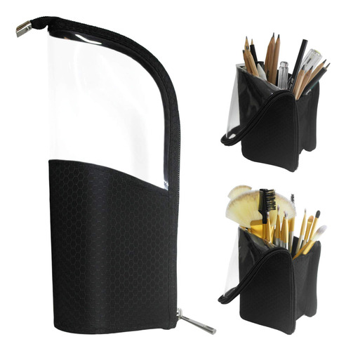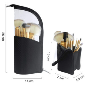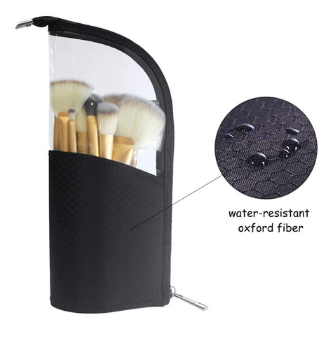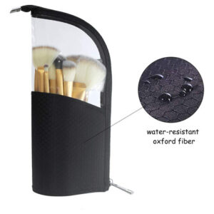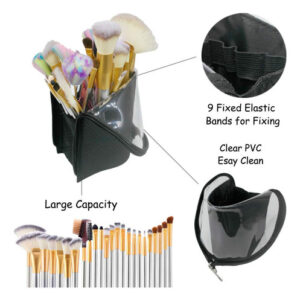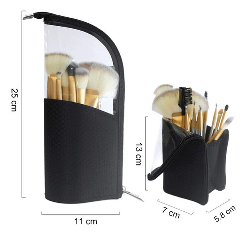 O porta-pincéis de maquiagem portátil de viagem, feito de fibra de náilon resistente à água e PVC transparente, pode ser fechado com zíper resistente para evitar que os pincéis fiquem longe de poeira, pelos de animais de estimação e outras sujeiras. Grande capacidade de armazenar até 24-32 pincéis ou lápis, economizando espaço para sua bolsa e facilitando o transporte com seus cosméticos. A bolsa pode ser dobrada como um porta-canetas vertical e facilita a localização e o uso dos pincéis ou canetas. Características: 1. Mala de viagem portátil: leve, economiza espaço, fácil de transportar, compacta e torna seus cosméticos fáceis de guardar em suas sacolas e malas 2. À prova diária de poeira: pode ser fechada com zíper para evitar poeira, cabelo, pólen e outras sujeiras. 3. Armazenamento grande: grande o suficiente para acomodar até 32 pincéis e alto o suficiente para pincéis longos. 4,9 compartimentos separados por elástico: compartimentos elásticos podem pode ser usado para organizar e fixar os pincéis de maquiagem. 5. Resistente à água: feito de tecido resistente à água e o PVC transparente é fácil de limpar 6. Suporte vertical: flexível Construção para poder se levantar sozinha, fácil de obter a escova de que você precisa. – Tamanho compacto com grande capacidade, 9 ranhuras de elástico para efeito de fixação. Reduza a bagunça e economize espaço. Sem estresse, guardar um conjunto de 24 pincéis cosméticos – Uso multifuncional: pode ser usado como bolsa de pincéis de maquiagem/porta-canetas. Sozinho como porta-lápis ou pincel quando dobrado para baixo. Design em forma de copo para fácil acesso — PVC transparente macio e ecológico, capa rígida flexível coberta com náilon resistente à água, durável, dobrável e fácil de limpar — Estojo de maquiagem de viagem perfeito: design leve e portátil, com interiores à prova d'água, antidesgaste e à prova de derramamentos. Você pode levar seus cosméticos para qualquer lugar – Economizando espaço: fácil de transportar e pode ser colocado em sacolas e malas para economizar espaço. Deixar seus cosméticos limpos e arrumados, não deixará suas malas bagunçadas