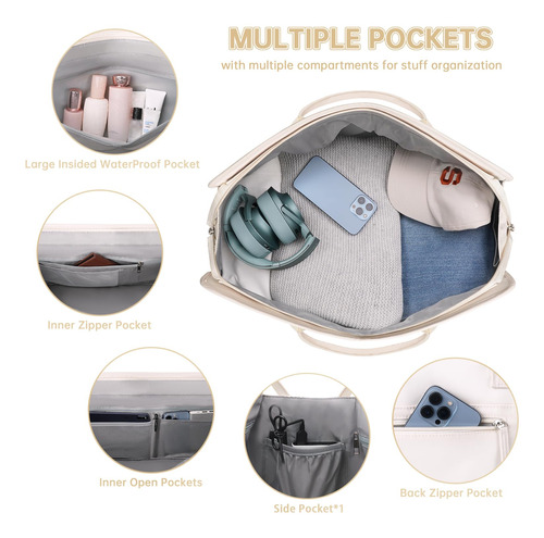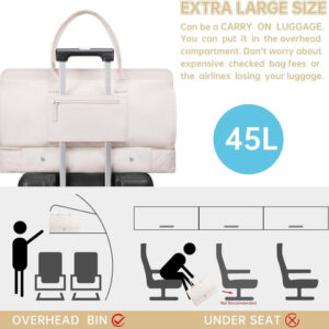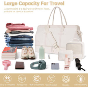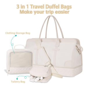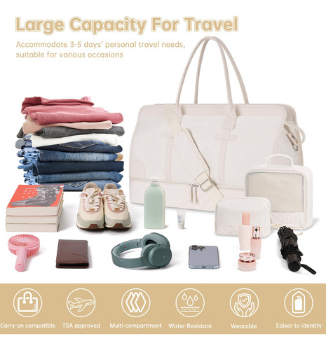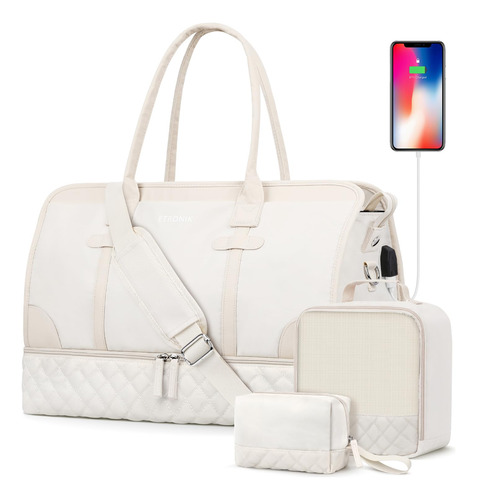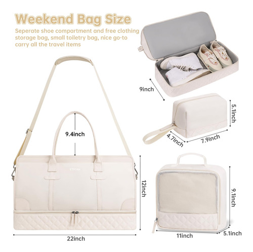 Bolsa noturna ETRONIK Weekender para mulheres, mochila de viagem grande com compartimento para sapatos e bolso úmido, sacola de mão, mochila de ginástica com bolsa de higiene, bolsa para hospital, conjunto de 3 peças, tamanho GG, bege — Conjunto atualizado de 3 peças: a bolsa de viagem vem com 1 bolsa de fim de semana para mulheres para ajudar você a organizar e maximizar seu espaço ao viajar. 1 bolsa de armazenamento de roupas para ajudar a classificar, organizar e localizar roupas rapidamente ly.1 bolsa de higiene para guardar seus cosméticos e produtos de higiene pessoal. A mochila ETRONIK para viagem é feita de materiais espessos e resistentes, proporcionando uma experiência de transporte confortável. Mala de viagem de tamanho extra grande para mulheres: a bolsa de viagem para itens pessoais, com vários bolsos e compartimentos para organização de coisas e espaço espaçoso, pode caber em 3 a 5 dias de itens essenciais de viagem, cabendo facilmente em suas roupas, produtos de higiene pessoal, sapatos, laptop e outros itens. Na parte de trás da mochila, há um bolso para facilitar o acesso ao seu smartphone, documentos de identidade ou passaporte. Equipado com uma porta de carregamento USB embutida, perfeita para carregar seu telefone ou outros dispositivos durante a viagem – bolsa de ginástica separada por água e compartimento separado para sapatos: a bolsa interna de separação seca e úmida é feita de material resistente à água de alta densidade, pode ajudar a separar itens secos e úmidos. Se você tiver roupas ou toalhas molhadas, pode colocá-las na bolsa úmida; esta mochila de ginástica para mulheres tem um compartimento inferior separado para seus sapatos e outros. Também pode ser usada como bolsa hospitalar – Malas de mão para aviões: tamanho extra grande (H* W* L) 56x31x23 cm/22* 12* 9", a mochila ETRONIK atende à maioria dos requisitos internacionais de bagagem de mão. Leve este tamanho extra grande como bagagem de mão durante o voo (não recomendado como bolsa pessoal), você pode colocá-lo no compartimento superior. O design da alça de bagagem faz com que esta bolsa possa ser colocada em sua bagagem dobrável. Esta mala de embarque noturno de fim de semana é perfeita para sua viagem pessoal. Mochila de ampla aplicação: se você está procurando uma linda mala de viagem, seria uma ótima opção. Possui uma alça de bagagem para deslizar sobre sua bagagem com rodas, além de uma alça de ombro acolchoada ajustável para mochila ou estilo transversal. Você nunca mais terá dificuldades no aeroporto com essas principais opções. Use-o como mochila, bolsa de viagem de avião, bolsa de bagagem, bolsa esportiva de ginástica, bolsa de fim de semana, bolsa de mão, bolsa de hospital ou bolsa de praia
