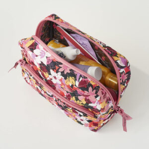 Bolsa organizadora grande de maquiagem cosmética Vera Bradley Performance Twill, preta, tamanho único — Performance TWILL — Este tecido resistente às intempéries e repelente à água é durável e leve para o uso diário — Uma viagem indispensável — Seja uma escapadela de fim de semana ou uma viagem à Europa, esta capa é necessária para todo viajante — Guarde sua bagagem despachada ou de mão imprima em negrito e brilhante com um interior revestido de PVC no compartimento principal, permitindo uma fácil limpeza – CHIQUE E ESPAÇOSO — Possui um compartimento principal espaçoso para guardar cosméticos e frascos de tamanho normal e um bolso frontal externo para manter pincéis e ferramentas pequenas separados, limpos e de fácil acesso (somente bolsas, pincéis e itens de beleza não incluídos) — Estiloso e do tamanho certo — O cosmético grande mede 7 polegadas de altura, 10 polegadas de largura e 4 polegadas de profundidade