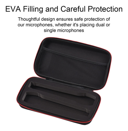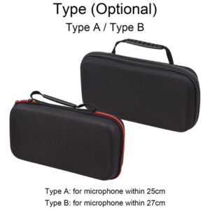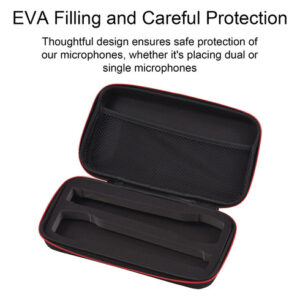 Bolsa de transporte portátil e leve, especialmente projetada para o armazenamento de microfone. Grande capacidade de armazenar simultaneamente receptores/transmissores/cabeças de conversão/cabos de carregamento/fones de ouvido. Design de superfície em tecido Oxford, resistente à água e poeira, fácil de limpar. Equipado com acolchoamento interno de espuma para proteger o microfone contra choques. Design de fecho com zíper e com alça para transporte conveniente.