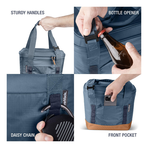 Bolsa térmica dobrável CleverMade, refrigerador de carro de praia e viagem de 18 latas, refrigerador flexível dobrável, alça de ombro, abridor de garrafas, ótimos refrigeradores de carro para viagens, fácil de limpar e à prova de vazamentos [Ocean] — Bolsa térmica dobrável isolada: nossas bolsas térmicas resistentes e estruturadas de lado macio são construídas com nosso isolamento CoolShield de 6 camadas para manter seus itens essenciais gelados – perfeitos para piqueniques, bicicletas, viagens à praia e qualquer aventura ao ar livre que você possa imaginar – COMPACTA E RESISTENTE: esta bolsa térmica portátil possui alças superiores acolchoadas para transporte confortável, uma garrafa integrada abridor para facilitar o acesso e margaridas para funcionalidade adicional durante a viagem. – COMPANHEIRO DE VIAGEM CONVENIENTE: coloque e guarde facilmente em seu carro usando nossa tecnologia patenteada SnapHinge e FlexFold com WrapStrap, garantindo armazenamento sem complicações em qualquer lugar. A base sólida da placa e a estrutura de arame permitem uma capacidade de peso de 25 libras – 100% POLIÉSTER RECICLADO E FORRO À PROVA DE VAZAMENTOS: tecido do corpo principal feito de poliéster 100% reciclado. Nosso refrigerador de piquenique é construído com forro PEVA soldado sônico e à prova de vazamentos para uma solução durável e ecológica. – Espaçosa e leve: medindo 12" x 9,5" x 11", nossa bolsa térmica macia oferece amplo espaço para todas as suas bebidas e, quando vazia, pesa apenas 1,35 libras, tornando-a perfeita para vários passeios e aventuras sem comprometer a portabilidade