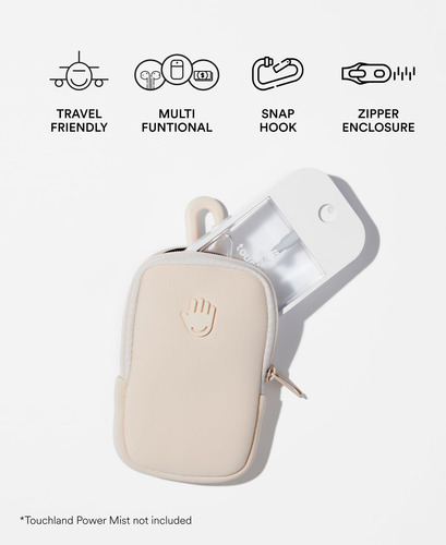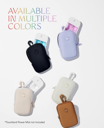 TOUCHLAND TOUCHETTE: bolsa macia de neoprene com zíper e gancho de pressão para transportar qualquer névoa Touchland de 1 FL OZ; não inclui desinfetante para mãos. Por