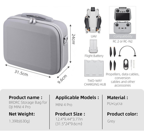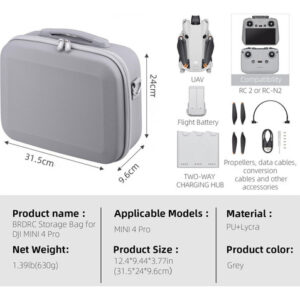 É feito de couro Pu de alta qualidade e oferece proteção completa contra danos e arranhões durante o transporte e armazenamento do drone combinado DJI mini 4 pro Fly Plus e outros acessórios. A