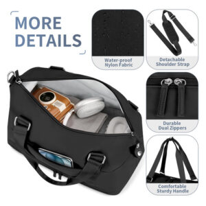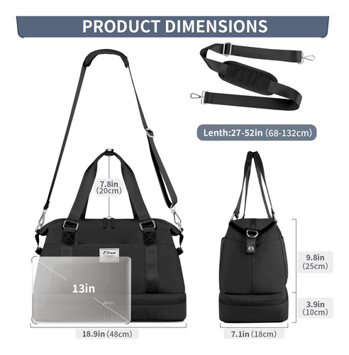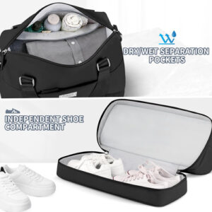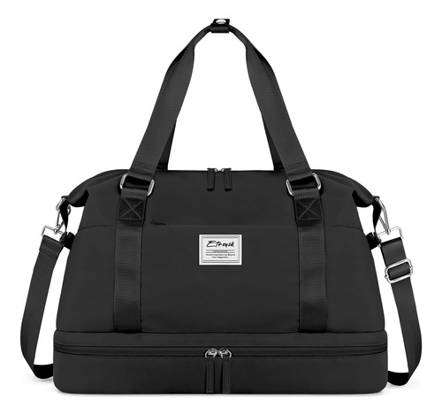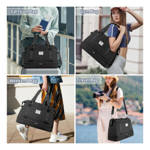 Bolsa de ginástica ETRONIK com compartimento para sapatos e bolso úmido preta – Bolsa de fim de semana com vários bolsos: esta bolsa de ginástica para mulheres tem 8 bolsos múltiplos e organizacionais, pode conter de 6 a 8 peças de roupa, itens essenciais de viagem, produtos de higiene pessoal, etc. As dimensões das bolsas de fim de semana para mulheres são 18,9* 13,7* 7,1 polegadas, tem capacidade de 30 L e é adequada para viagens de curto prazo de 2 a 3 dias. – Compartimento separado para sapatos: a bolsa de fim de semana tem um cabine de sapatos independente, que pode acomodar 2 pares de sapatos ou roupas sujas. Até mesmo os sapatos ficam sujos, não mancha outros itens, é excelente ajude durante suas viagens e após o exercício. – Separe a seco e úmido: esta bolsa de mão tem um grande bolso impermeável forrado de PVC, feito de material resistente à água de alta densidade, para roupas molhadas, toalhas e roupas de banho. Ela mantém a bolsa limpa e evita que outros itens se molhem, garantindo a proteção de seus pertences durante a viagem. – Tamanho adequado para voar: o tamanho da mochila foi projetado para atender aos regulamentos e requisitos de voo para bagagem de mão. Ela se encaixa perfeitamente no compartimento de bagagem e embaixo do assento. As bolsas noturnas para mulheres com manga permitem que você se prenda à mala, solte as mãos. Vários bolsos portáteis com zíper para guardar seus telefones, carteiras de identidade ou passaportes. – Mochila de ampla aplicação: a bolsa de ginástica ETRONIK é uma companheira perfeita e confiável para esportes e viagens. Feito de nylon de alta qualidade e resistente à água, garante durabilidade duradoura. Esta bolsa multiuso pode ser usada como bolsa de ginástica, bagagem de mão para voos, bolsa esportiva, bolsa de fim de semana, bolsa de hospital ou uma elegante companheira de praia.