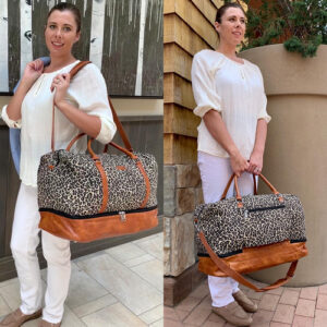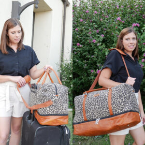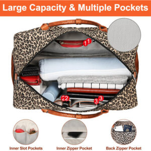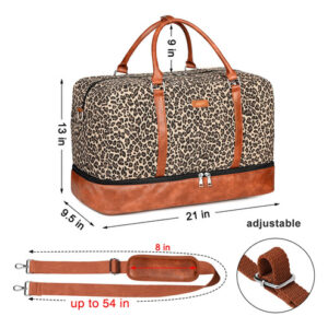 — Bolsa feminina de fim de semana: 21" L 13" H9,5" W, alças ajustáveis de até 54". A mala de viagem de fim de semana pode conter as necessidades de 2 a 4 dias, um laptop maior de 21,5", roupas, calças, calçados, cosméticos, produtos de higiene pessoal, equipamentos eletrônicos, etc.