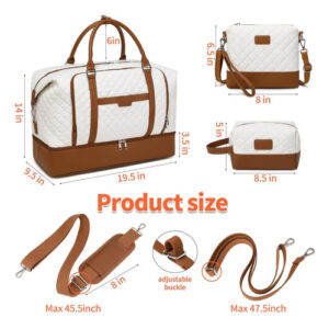 Bolsa de fim de semana 3 em 1 para mulheres, bolsa de viagem fofa, bolsa de viagem, mochila de ginásia/bolsa de higiene, manga de carrinho/bolsa tiracolo Nossas mochilas de viagem têm uma aparência elegante e linda. É feito de tecido Oxford durável e material de couro sintético, e o forro é feito de poliéster, que é durável e à prova d'água. E esta mochila pode ser usada para atividades de ginástica, esportes e natação, o espaço interno é suficiente para seus casacos, calças, sapatos e outros suprimentos diários. Além disso, esta mochila de viagem possui muitos bolsos funcionais, para que você possa separar facilmente cartões, chaves, carteiras e outros itens pequenos. Mochila de viagem portátil para homens e mulheres Especificações: Material: tecido de poliéster e material de couro sintético Capacidade: 40 L Peso: 2,7 libras Dimensões: mochila: 19,5 “x 9,5" x 13" Bolsa de higiene pessoal: 8,5 “x 5" Bolsa tiracolo: 8 “x 6,5" Estilo: bolsa de ombro, bolsa mensageiro O pacote inclui mochila x 1 bolsa tiracolo Bolsa x 1 alça de ombro removível x 1 Esta bolsa feminina de fim de semana é adequada para exercícios, viagens, tênis, basquete, ioga, natação, camping, exercícios e muitas atividades ao ar livre. De estilo simples, fofo e estiloso, é ideal para presentear suas amigas, mãe, esposa, irmãs, filhas ou namorada no aniversário, Dia das Mães, Dia dos Namorados, Dia da Mulher, Natal, Ação de Graças, Halloween, etc. — Conjunto de 3 mochilas de viagem ideal: 1. Vem com uma bolsa tiracolo de $23. Vem com uma bolsa de higiene de $15. 3 vem com uma bolsa de higiene de $15. Vem com uma mochila de viagem ideal e destacável alça e alças de estilingue. Serviço pós-venda. Todos os nossos produtos devem ser inspecionados antes de serem entregues a você, se você encontrar algum dano no zíper ou outros problemas de qualidade após receber o produto, entre em contato com nosso serviço de atendimento ao cliente para obter o serviço de devolução/reembolso. – Bolsa noturna de grandes dimensões e bolsa hospitalar para mulheres: nossa sacola de viagem Stuery é feita de tecido Oxford durável e material de couro sintético, e o forro é feito de poliéster. Tamanho: 19,5 “L* 9,5" W* 13" H, (pode acomodar um laptop de até 17 polegadas, maior que a mochila de viagem normal). Com um total de 7 bolsos e 1 compartimento, o espaço espaçoso pode caber até mesmo em 3 a 5 dias de itens essenciais do dia a dia. Cabe facilmente em seus sapatos, roupas, produtos de higiene pessoal, laptop, iPad e outros itens. – Bolsa de fim de semana elegante e malas de mão para aviões: nossas mochilas de viagem Stuery com aparência elegante e linda. Atende à maioria dos requisitos internacionais de bagagem de mão. Cabem no compartimento superior e no assento inferior como itens pessoais durante o voo. A manga integrada do carrinho desliza sobre a alça de bagagem rolante, facilitando a viagem ao aeroporto. Um bolso com zíper na parte traseira para guardar seu smartphone, documento de identidade ou passaporte. Sua bolsa de embarque ideal para o fim de semana para viagens de negócios ou pessoais. – Bolsa de ginástica separada e úmida com compartimento para sapatos: feita de material resistente à água de alta densidade, pode ajudá-lo a separar itens secos e molhados. Se você tiver roupas ou toalhas molhadas, pode colocá-la nesta bolsa de ginástica. O compartimento para sapatos pode guardar seus sapatos ou roupas sujas para facilitar a separação das roupas limpas durante a viagem. É perfeita para exercícios, viagens, tênis, basquete, ioga, natação e atividades ao ar livre para acampar. – Bolsa de mão multiuso para uso diário: nossas malas de viagem Stuery atingem a maior demanda e fantasia das mulheres urbanas modernas em malas de viagem. Use-a como mochila para viajar, bolsa de viagem para itens pessoais, bolsa para mamãe para o hospital, bolsa de fim de semana para mulheres, bolsa de ginástica para mulheres, bolsa de mão ou bolsa para laptop, bolsa de ombro ou bolsa mensageiro. Ela também pode ser usada como presente de Natal, adequada para familiares, amigos e parceiros.
