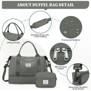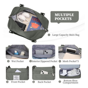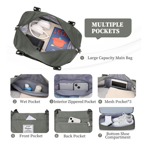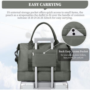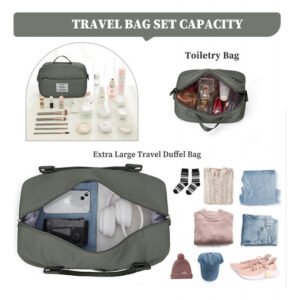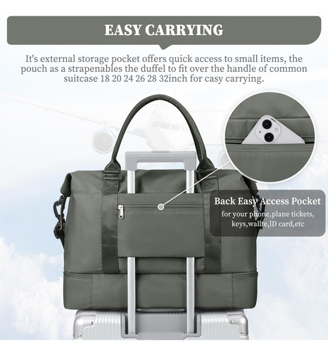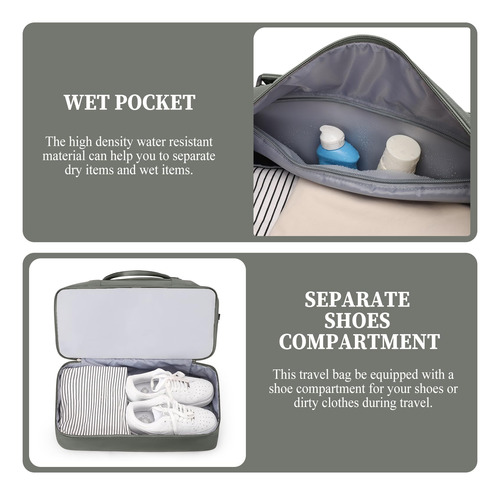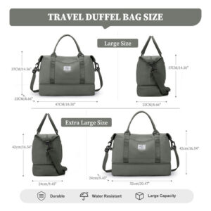 Bolsas de fim de semana para mulheres — Bolsa de mão extra grande: esta bolsa de fim de semana para mulheres tem 20,479,4516,53 polegadas e atende à maioria dos requisitos internacionais de bagagem de mão. A capacidade aumentou 36% em relação ao tamanho grande, a capacidade grande é de 38 L, o tamanho extra grande é de 52 L – Compartimento para sapatos e bolsa de higiene: as malas de viagem para mulheres têm um compartimento separado na parte inferior para sapatos e roupa suja. E equipada com uma bolsa de higiene, tamanho: 9,43 x 6,12 polegadas — Bolso úmido e manga de carrinho: esta mochila oferece um bolso forrado de PVC impermeável com zíper para roupas molhadas, toalhas e roupas de banho. A capa embutida do carrinho desliza sobre a alça de bagagem do carrinho, economizando esforço e facilitando a movimentação. Vários bolsos de grande capacidade: a bolsa noturna oferece um interior espaçoso para transportar todos os itens essenciais de viagem em uma viagem de 3 a 11 dias. A bolsa de viagem possui 9 bolsos que ajudam você a arrumar com mais eficiência, mantendo seus itens essenciais organizados. Bolsa multifuncional de fim de semana: perfeita para uso diário, academia, viagens, pernoite ou bagagem de mão. Adequado para mala de viagem, bolsa de mão, bolsa noturna, mochila, bolsa de fim de semana, bolsa de itens pessoais, bolsas esportivas de ginástica