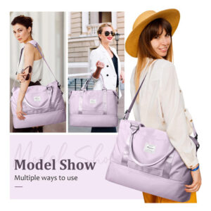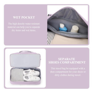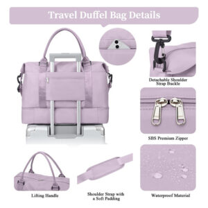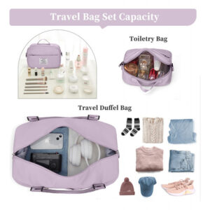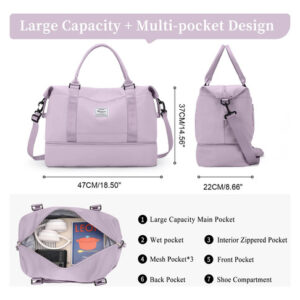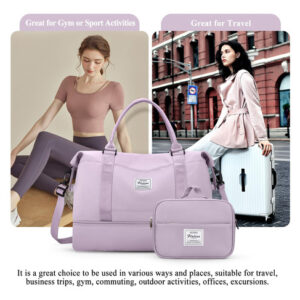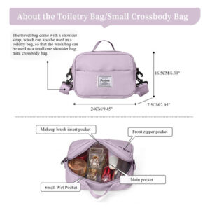 Bolsas de fim de semana para mulheres com bolsa de higiene separada, bolsa de fim de semana, tamanho 18,50"* 14,1"* 8,8", bolsa de higiene: 9,4"* 3"* 6,7". Pontos extras: alça de carrinho de bagagem+alça de ombro ajustável removível+bolso separado para secar e molhar. Perfeito para uma bagagem de mão, pode caber embaixo de um assento de avião. Use-o como mochila, bolsa de viagem, bolsa de fim de semana, bolsa noturna, bolsa de mão. Leve todos os seus itens essenciais de viagem. Construção durável Feita com oxford durável e resistente à água para proteger seus itens com zíper de alta qualidade e botão de metal. Seja projetado com grande capacidade e 9 bolsos para guardar o que você precisa como item pessoal para viajar e muito mais. A bolsa de higiene pode guardar seus produtos para a pele, cosméticos e itens pequenos. – Bolsa de mão adequada para aviões: as malas de fim de semana para mulheres têm 18,5014,568,13 polegadas e atendem à maioria dos requisitos internacionais de bagagem de mão. E pode ser guardada como bolsa de itens pessoais em compartimentos superiores, embaixo do assento durante o voo – Compartimento para sapatos e bolsa de higiene: as malas de viagem para mulheres têm um compartimento separado na parte inferior para sapatos e roupa suja. E equipada com uma bolsa de higiene, tamanho: 9,43 x 6,12 polegadas — Bolso úmido e manga de carrinho: esta mochila oferece um bolso forrado de PVC impermeável com zíper para roupas molhadas, toalhas e roupas de banho. A capa embutida do carrinho desliza sobre a alça de bagagem do carrinho, economizando esforço e facilitando a movimentação. Vários bolsos de grande capacidade: a bolsa noturna oferece um interior espaçoso para transportar todos os itens essenciais de viagem em uma viagem de 3 a 11 dias. A mala de viagem possui 9 bolsos que ajudam você a arrumar com mais eficiência, mantendo seus itens essenciais organizados — Bolsa multifuncional de fim de semana: perfeita para uso diário, academia, viagens, pernoite ou bagagem de mão. Adequado para mala de viagem, bolsa de mão, bolsa noturna, mochila, bolsa de fim de semana, bolsa de itens pessoais, bolsas esportivas de ginástica