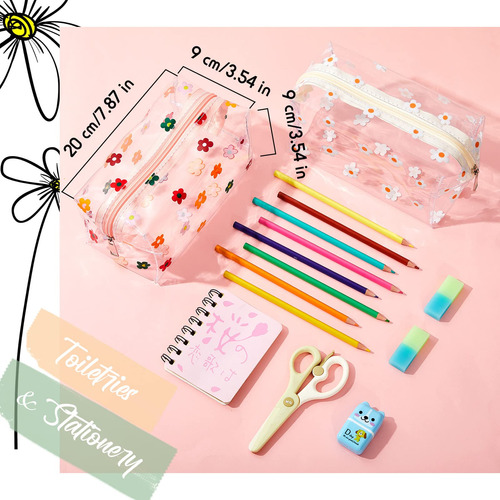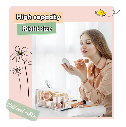 Características: Design atencioso: bolsas transparentes com zíper e design com zíper não permitem que o conteúdo caia ou se perca, e a abertura na parte superior pode ser aplicada para permitir que você receba seus itens com mais facilidade em segundos. Aparência bonita: bolsas de maquiagem transparentes com padrões de flores brilhantes são muito bonitas, adequadas para combinar roupas em cores vivas, também podem ser aplicadas como adereços fotográficos nos olhos das pessoas. Especificações: Material: PVC Cor: conforme mostrado nas imagens Tamanho: cerca de 20 x 9 x 9 cm/7,87 x 3,54 x 3,54 polegadas O pacote inclui: 2 peças de bolsas de viagem transparentes Notas: Medição manual, permita pequenos erros de tamanho. A cor pode haver uma pequena diferença devido às diferentes telas. – O que você receberá: você receberá 2 bolsas de viagem transparentes em diferentes estilos de flores, poderá usá-las para colocar suas pequenas coisas, como batom, pincel de maquiagem, chaves, telefones, cartões e assim por diante. Elas podem ser aplicadas para atender às suas necessidades para diversos fins – Capacidade adequada: essas bolsas de maquiagem transparentes medem aproximadamente 20 x 9 x 9 cm/7,87 x 3,3 54 x 3,54 polegadas, você pode carregá-los como quiser, a capacidade suficiente é adequada para armazenar seus itens pequenos, como batons, sombras e outras coisas, tornando-as fáceis de embalar – Design com zíper: nossas bolsas transparentes com zíper são caracterizadas pelo design com zíper, que deslizam suavemente, os zíperes podem ser fechados com firmeza, você não se preocupará com a queda ou perda do conteúdo e a abertura na parte superior pode ser aplicada para permitir que você receba seus itens com mais facilidade em segundos – Material de PVC: essas bolsas de maquiagem de PVC transparente para viagens são feitas de material de PVC de qualidade, à prova d'água e à prova de óleo, firme e leve, não é fácil de rasgar ou quebrar, permitindo que você carregue seu coração, capaz de suportar o uso a longo prazo – Amplos usos: você pode usar a bolsa de higiene transparente como bolsa de armazenamento, bolsa impermeável, bolsa de presentes, bolsa de joias, bolsa de embalagem geral, bolsa de embalagem de necessidades diárias para armazenar alguns itens pequenos, o que torna sua penteadeira limpa e ordenada